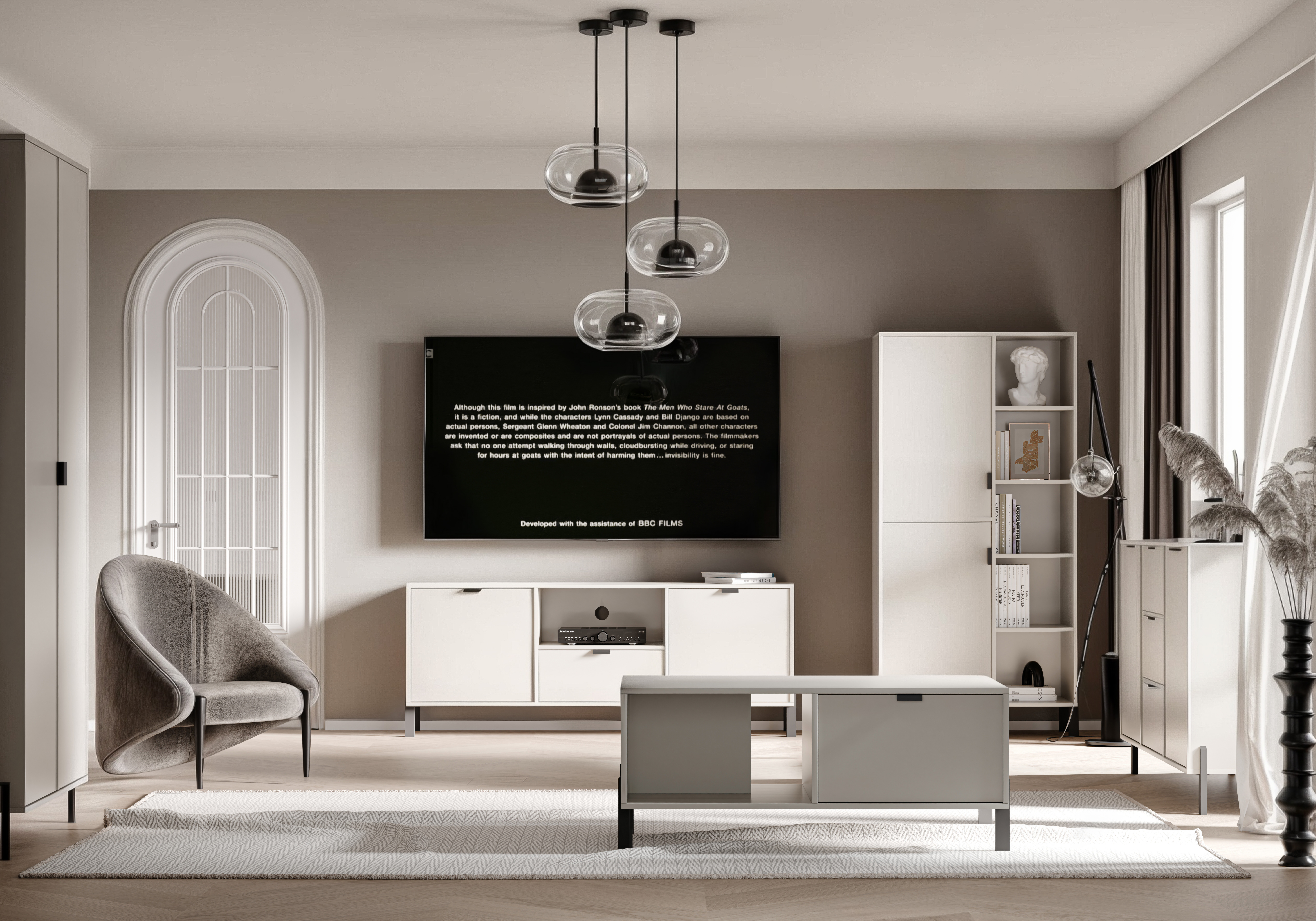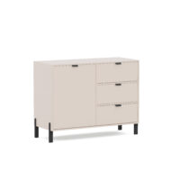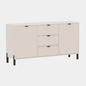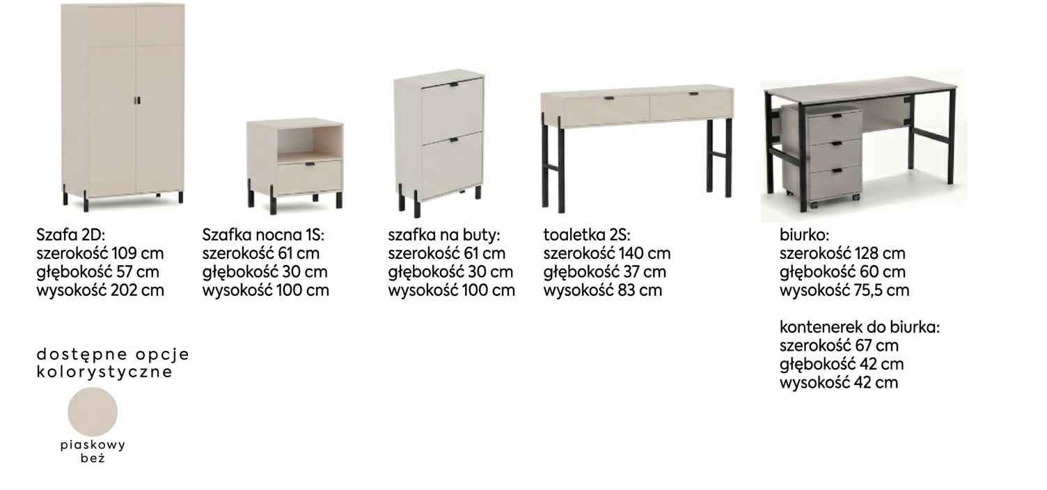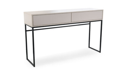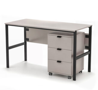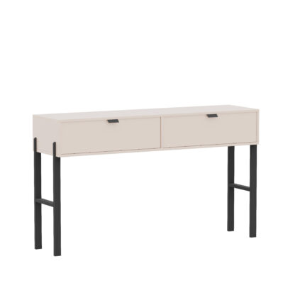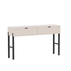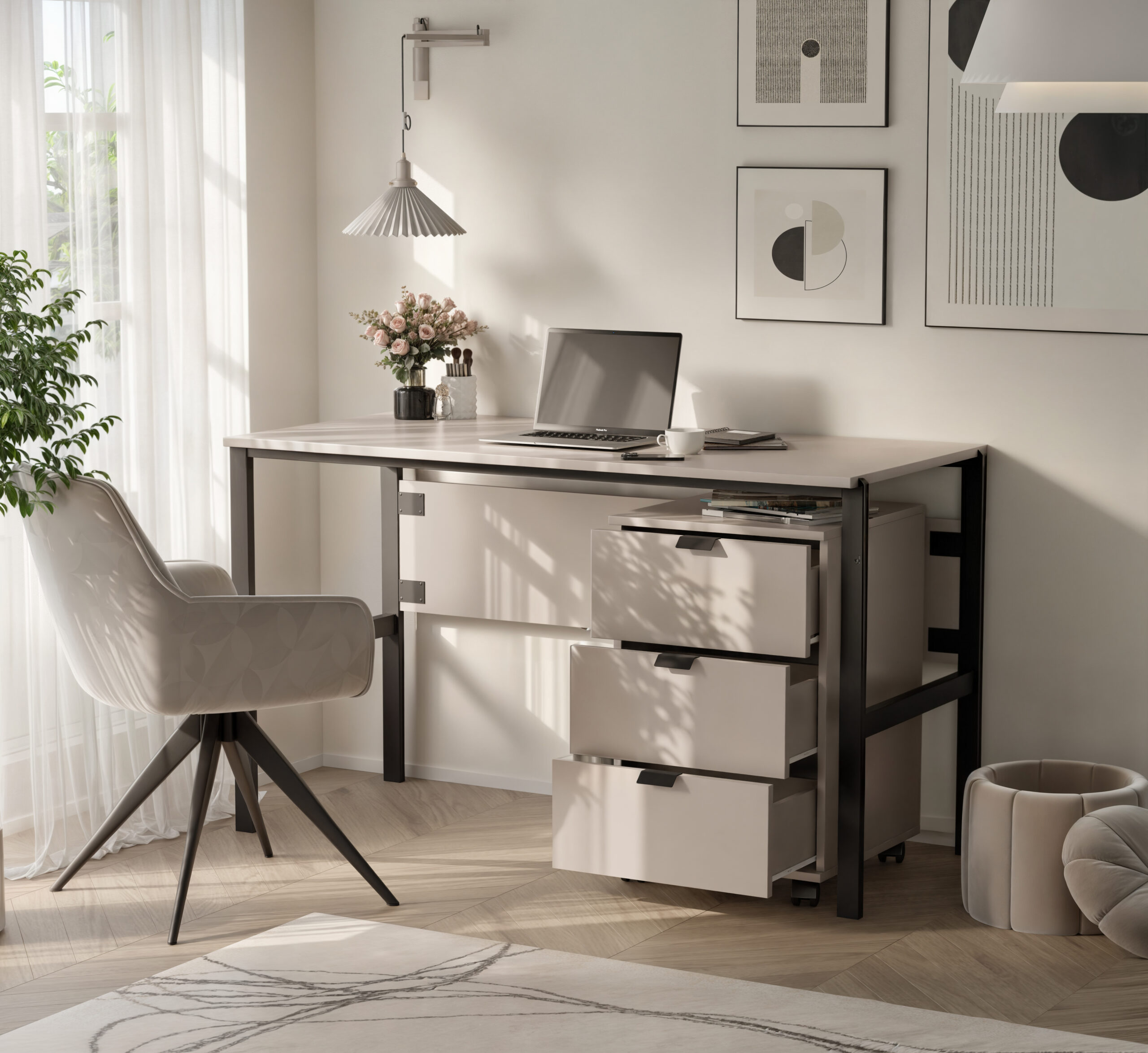Biurko CREMONA to nowoczesne i funkcjonalne rozwiązanie do domowego biura, pokoju młodzieżowego lub przestrzeni do pracy w salonie. Elegancki kolor beż piaskowy w połączeniu z czarnymi detalami i smukłymi nóżkami nadaje bryle lekkości oraz ponadczasowego charakteru.