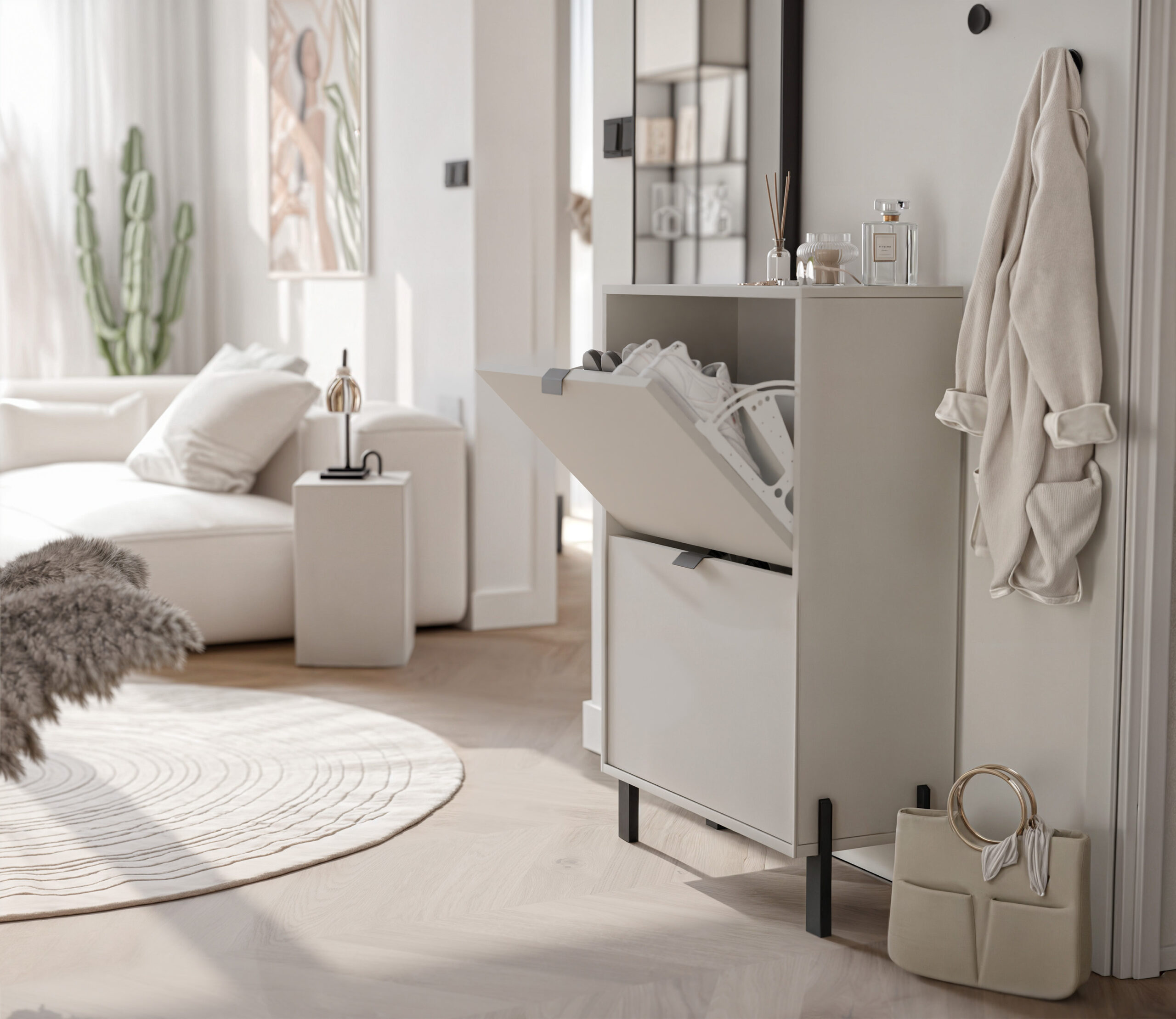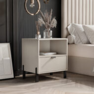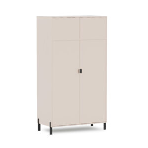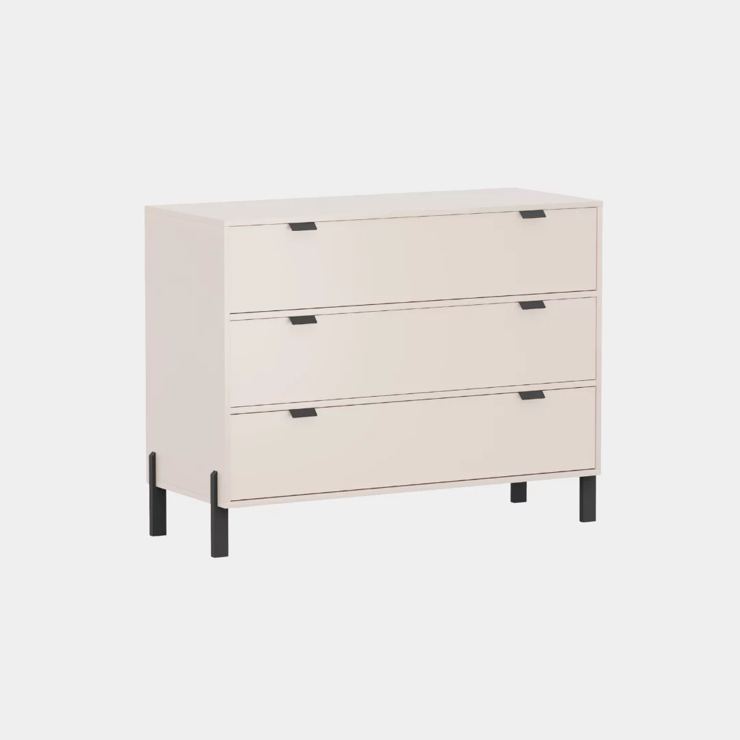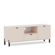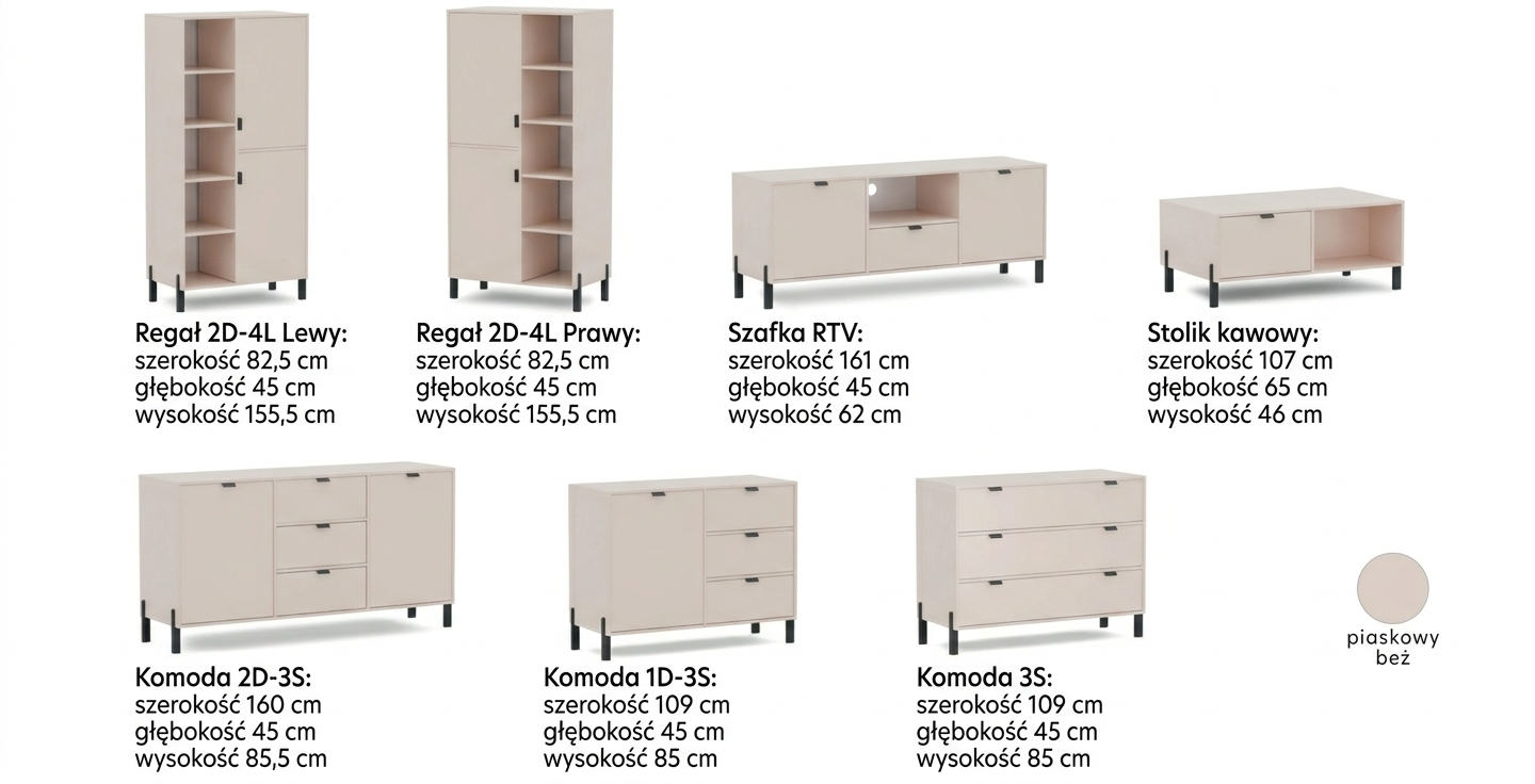 Beż piaskowy rozjaśnia wnętrze i nadaje mu elegancji, a czarne nóżki podkreślają nowoczesny charakter mebla.
