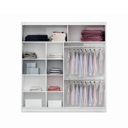 • Za jednym frontem – półki w układzie kolumnowym (wygodne strefy na swetry, koszulki, pudełka).
