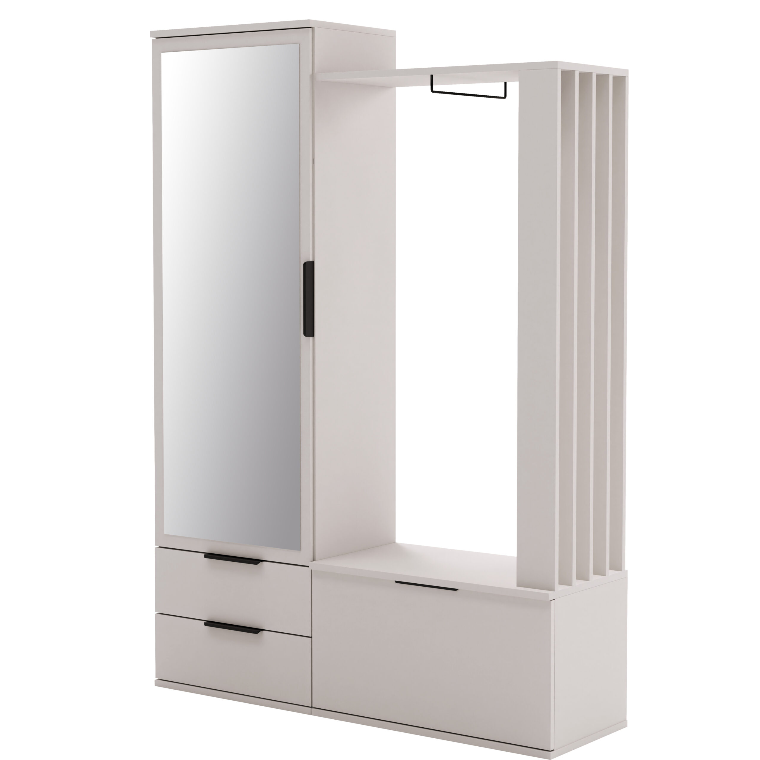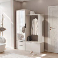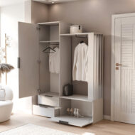 Dzięki takiemu rozwiązaniu garderoba stanowi kompletny zestaw do organizacji strefy wejściowej w jednym meblu.