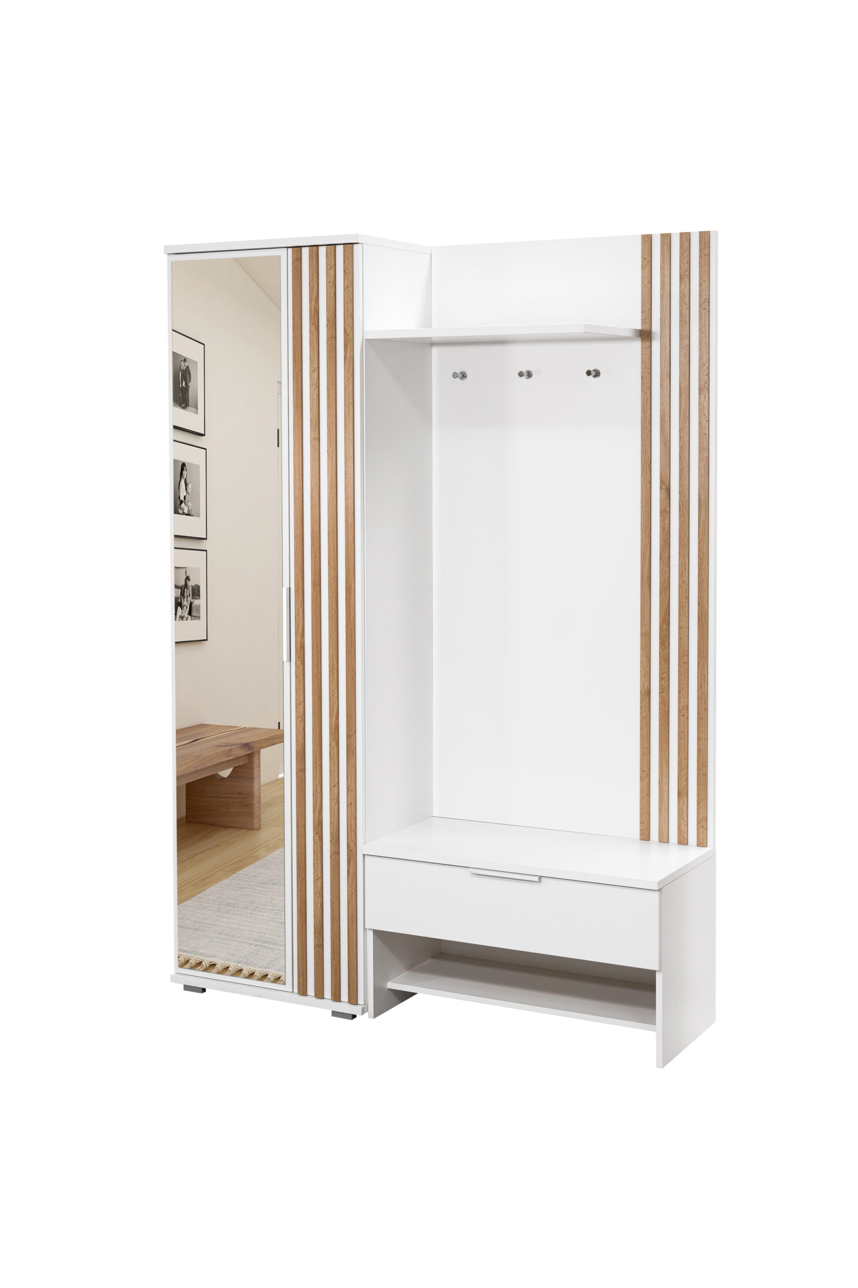 Garderoba LUGO – nowoczesna garderoba do przedpokoju z lustrem i lamelami