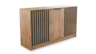 Front komody zdobią modne, pionowe lamele w czarnym kolorze, które nadają bryle głębi i elegancji. Naturalny dekor dębu wotan ociepla aranżację i wprowadza do wnętrza przytulny klimat. Minimalistyczna forma sprawia, że komoda świetnie odnajdzie się zarówno w nowoczesnych, loftowych, jak i klasycznych przestrzeniach.