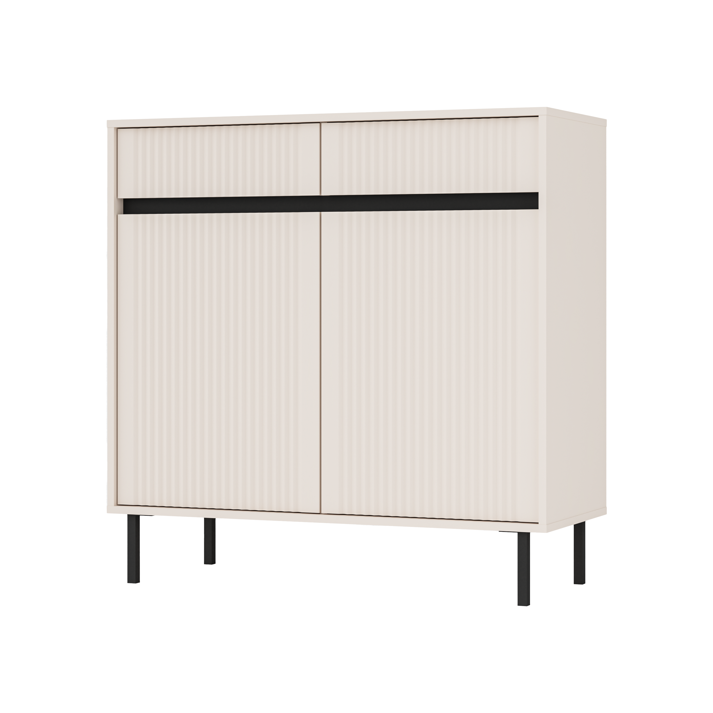 Komoda Bergen 2S to praktyczne rozwiązanie do nowoczesnych wnętrz. Jej ryflowane fronty nadają elegancji, a minimalistyczna forma sprawia, że idealnie komponuje się ze stylem skandynawskim, nowoczesnym i loftowym.