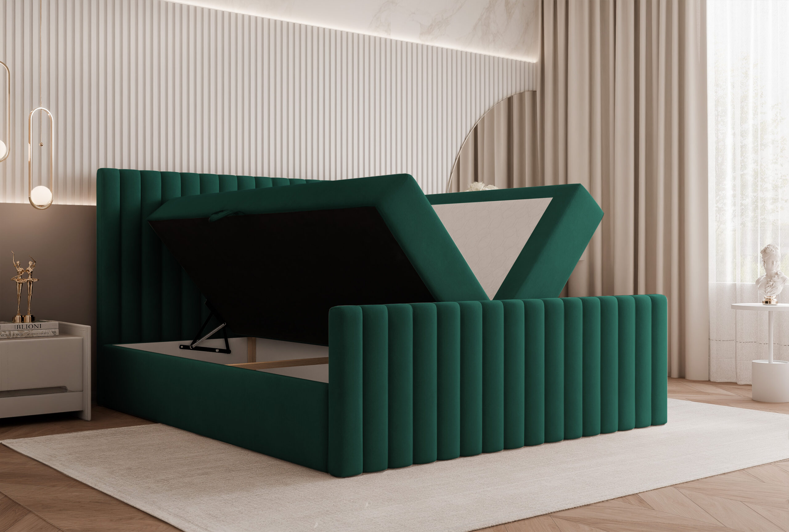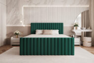 Łóżko kontynentalne Palermo to luksusowy model o eleganckim, nowoczesnym wyglądzie, zaprojektowany z myślą o najwyższym komforcie snu i wyjątkowym designie wnętrza. Charakterystyczne pionowe przeszycia na zagłówku i przodzie łóżka tworzą efekt przestrzenności i nadają mu ekskluzywny, hotelowy charakter.