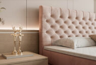 Model Savino został zaprojektowany z dbałością o każdy detal. Wysokie tapicerowane wezgłowie o wysokości 118 cm, wypełnione pianką, stanowi idealne oparcie podczas odpoczynku czy wieczornego czytania. Miękka tapicerka i eleganckie wykończenie sprawiają, że łóżko staje się centralnym punktem każdej sypialni.