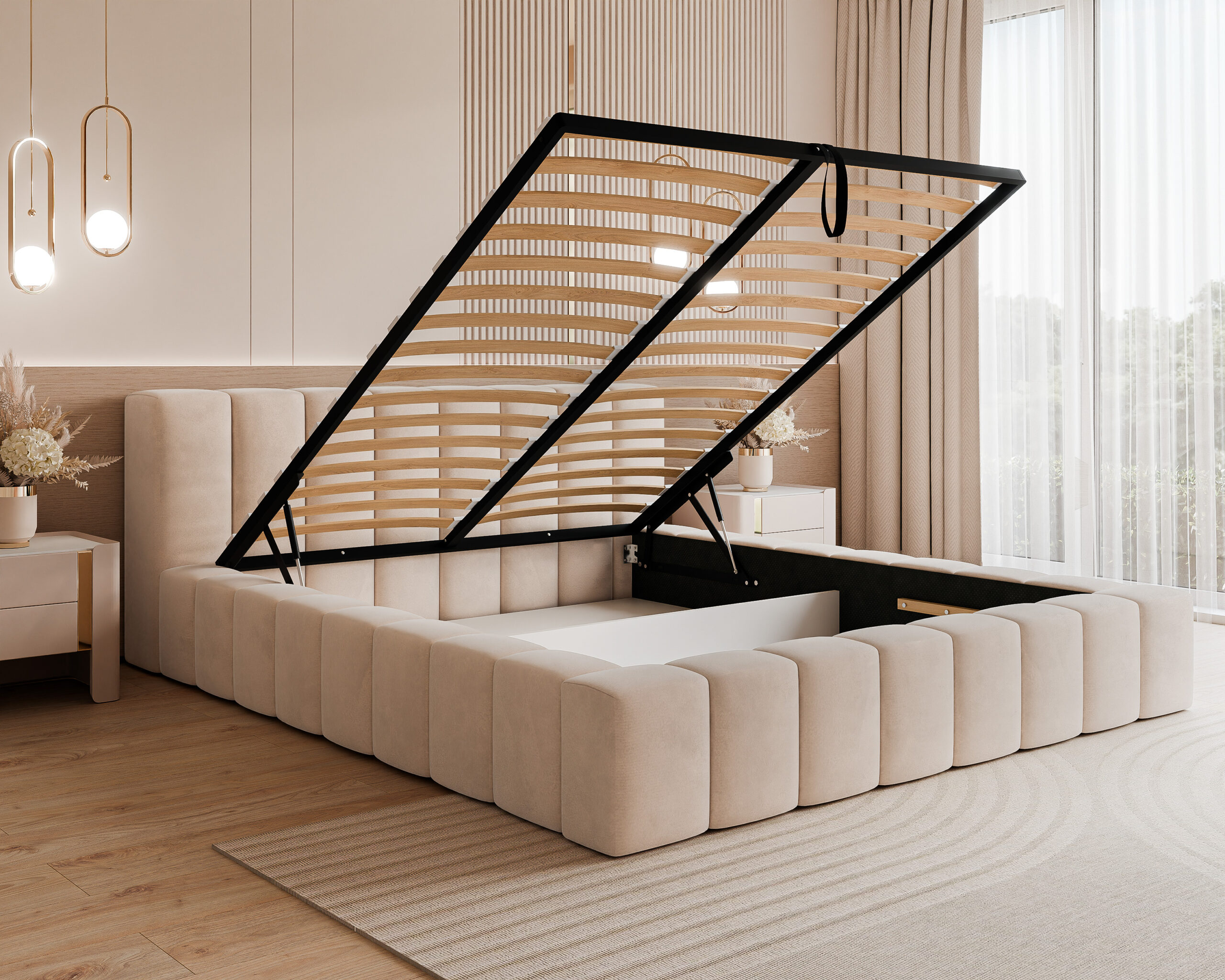 • Duży pojemnik na pościel na całej powierzchni łóżka