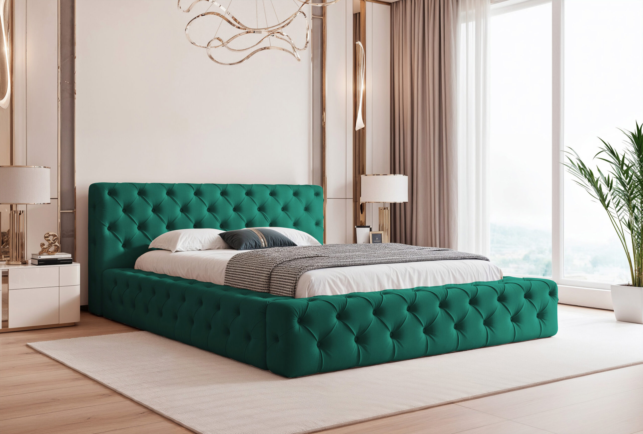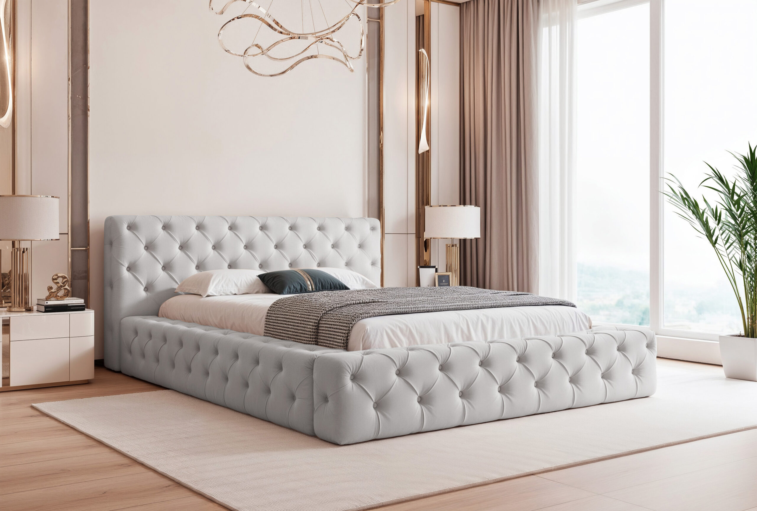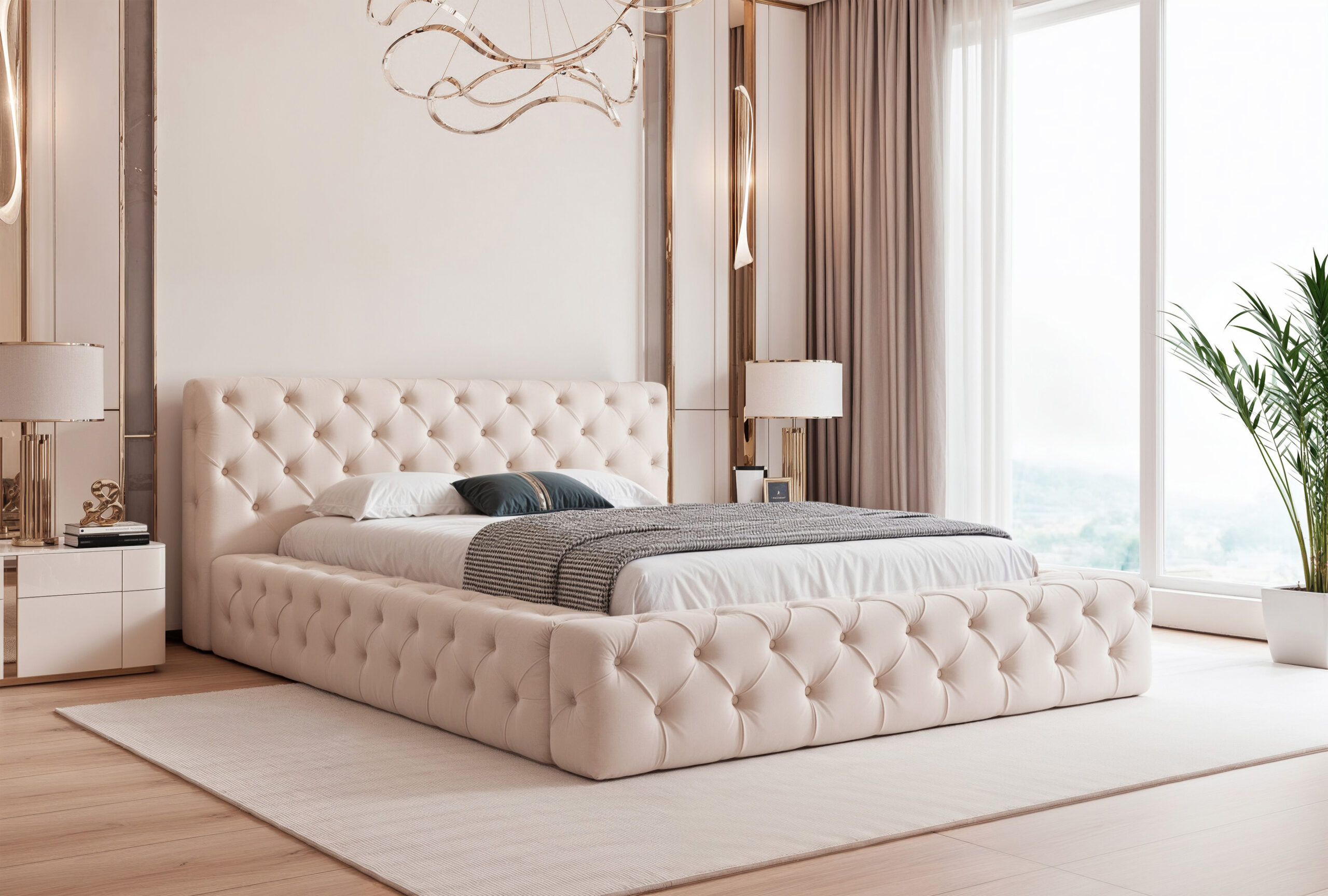 Łóżko tapicerowane Bellagio z pojemnikiem na pościel to kwintesencja luksusu i elegancji w nowoczesnym wydaniu. Pikowane wykończenie z guzikami w kolorze tkaniny nadaje meblowi wyjątkowego charakteru, który podkreśli styl każdej sypialni — od klasycznej po glamour. To propozycja dla osób ceniących nie tylko komfort snu, ale również estetykę i solidne wykonanie.