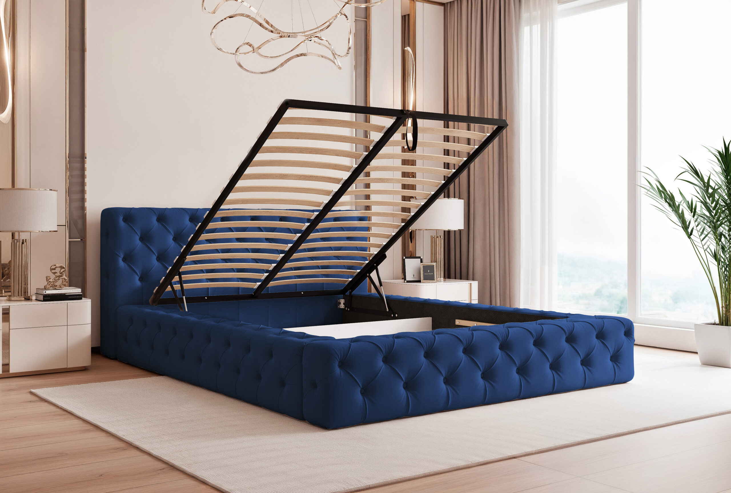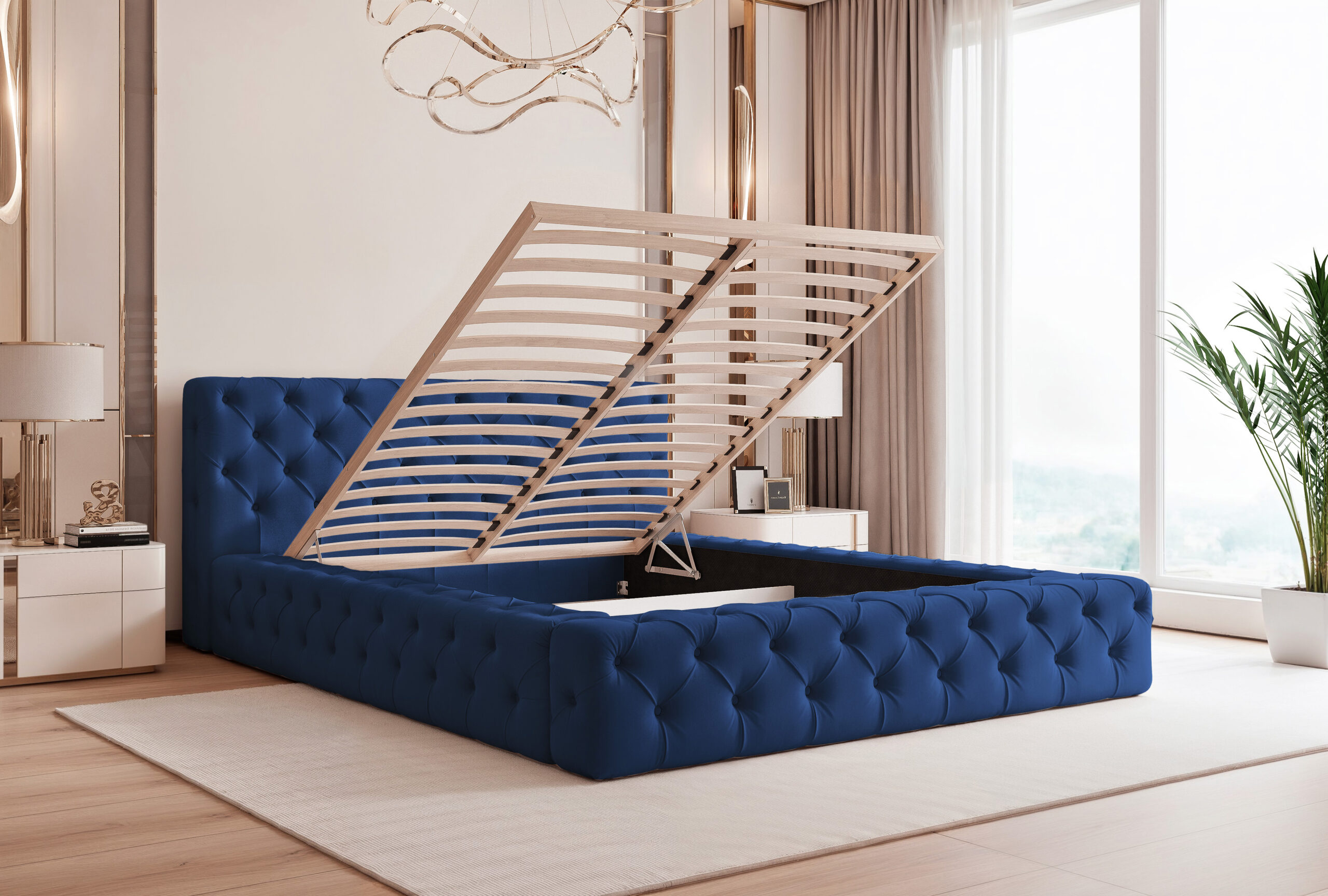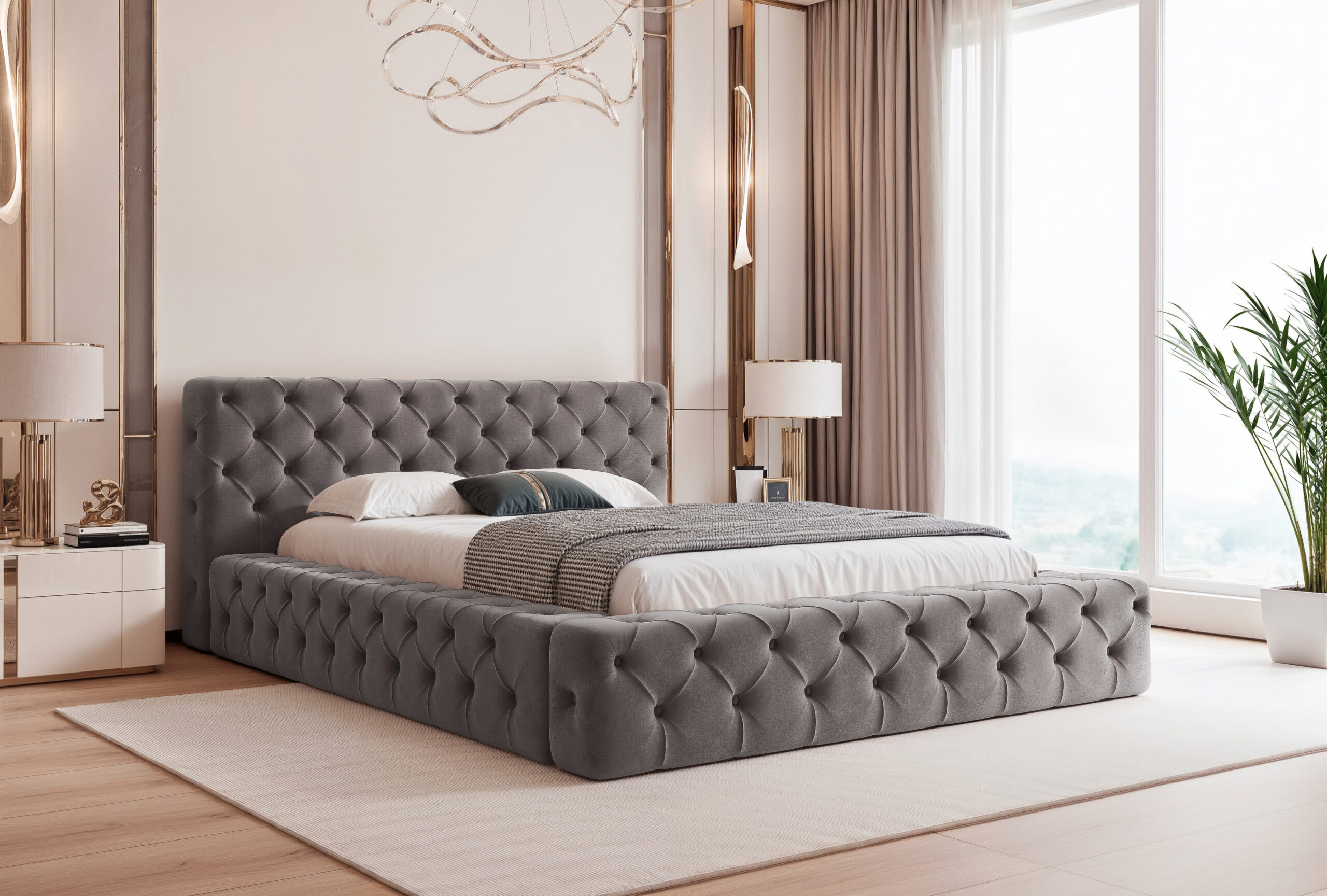 Łóżko tapicerowane Bellagio z pojemnikiem na pościel to kwintesencja luksusu i elegancji w nowoczesnym wydaniu. Pikowane wykończenie z guzikami w kolorze tkaniny nadaje meblowi wyjątkowego charakteru, który podkreśli styl każdej sypialni — od klasycznej po glamour. To propozycja dla osób ceniących nie tylko komfort snu, ale również estetykę i solidne wykonanie.
