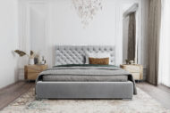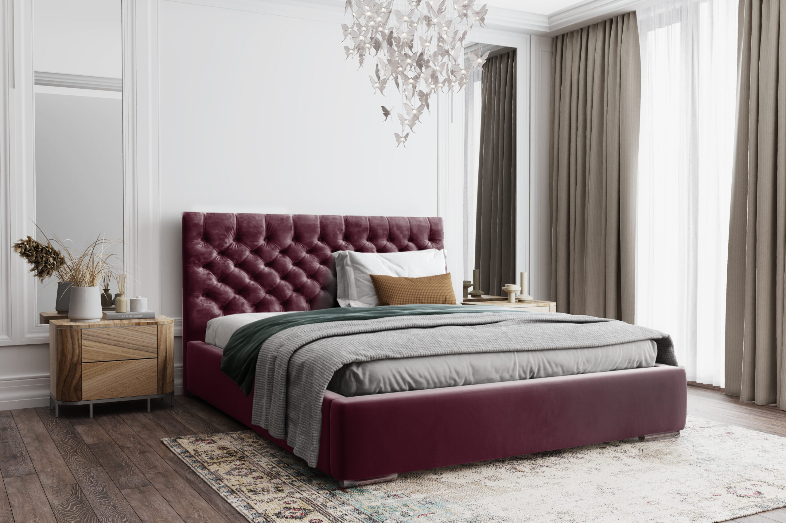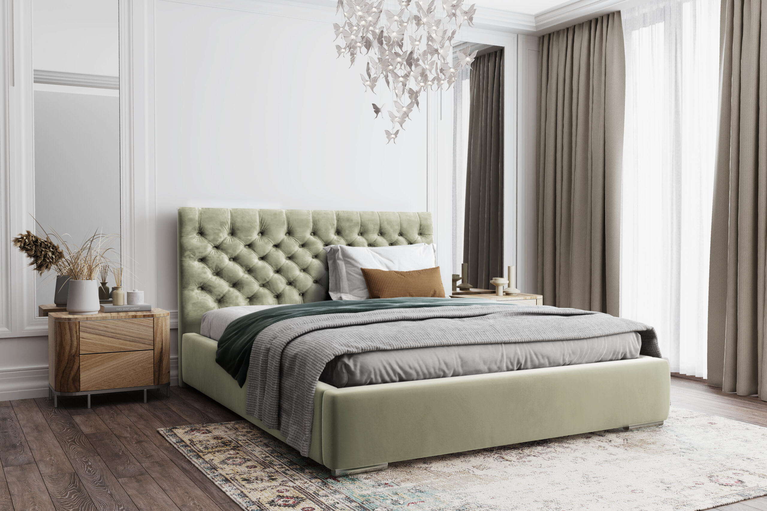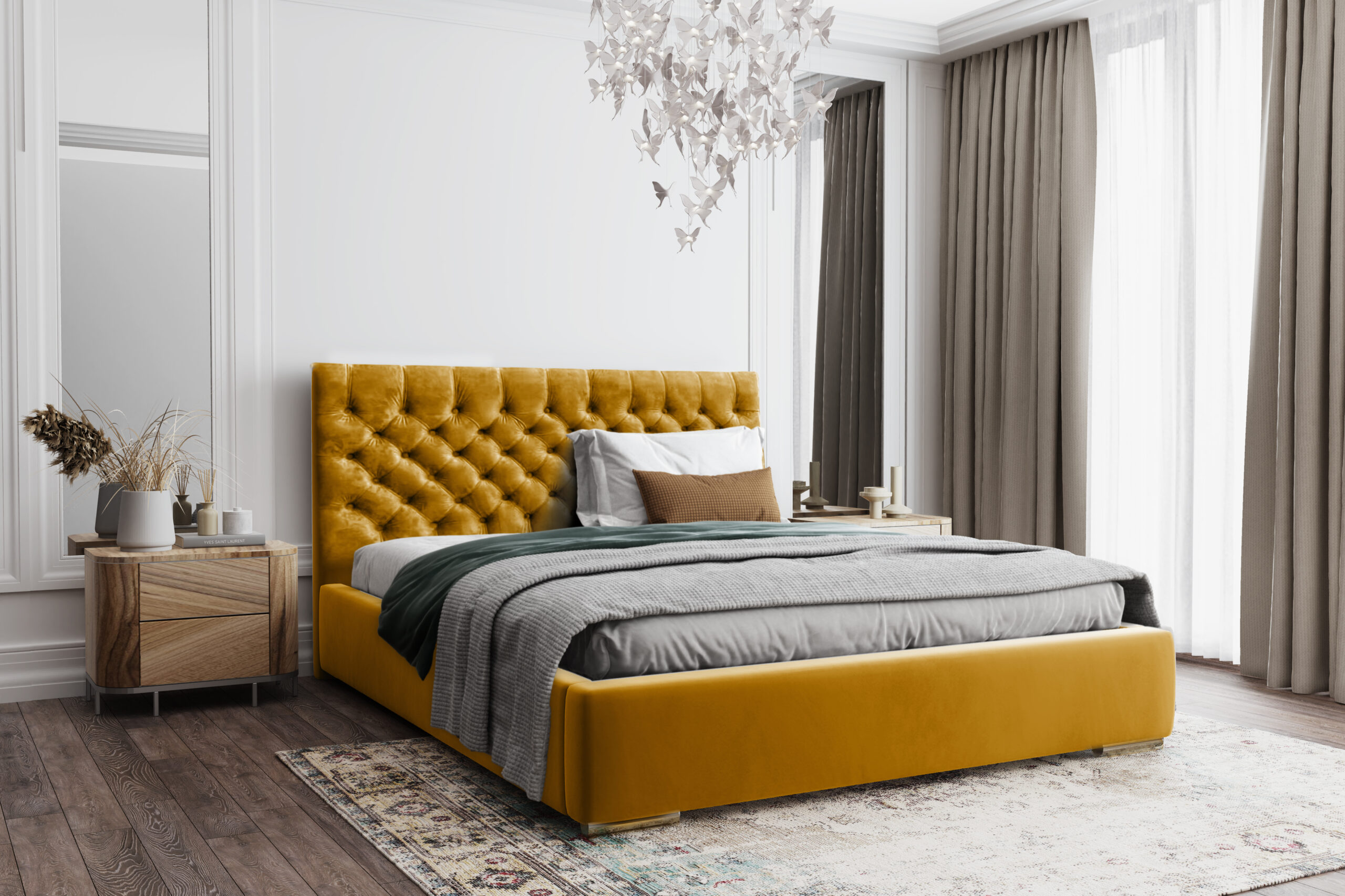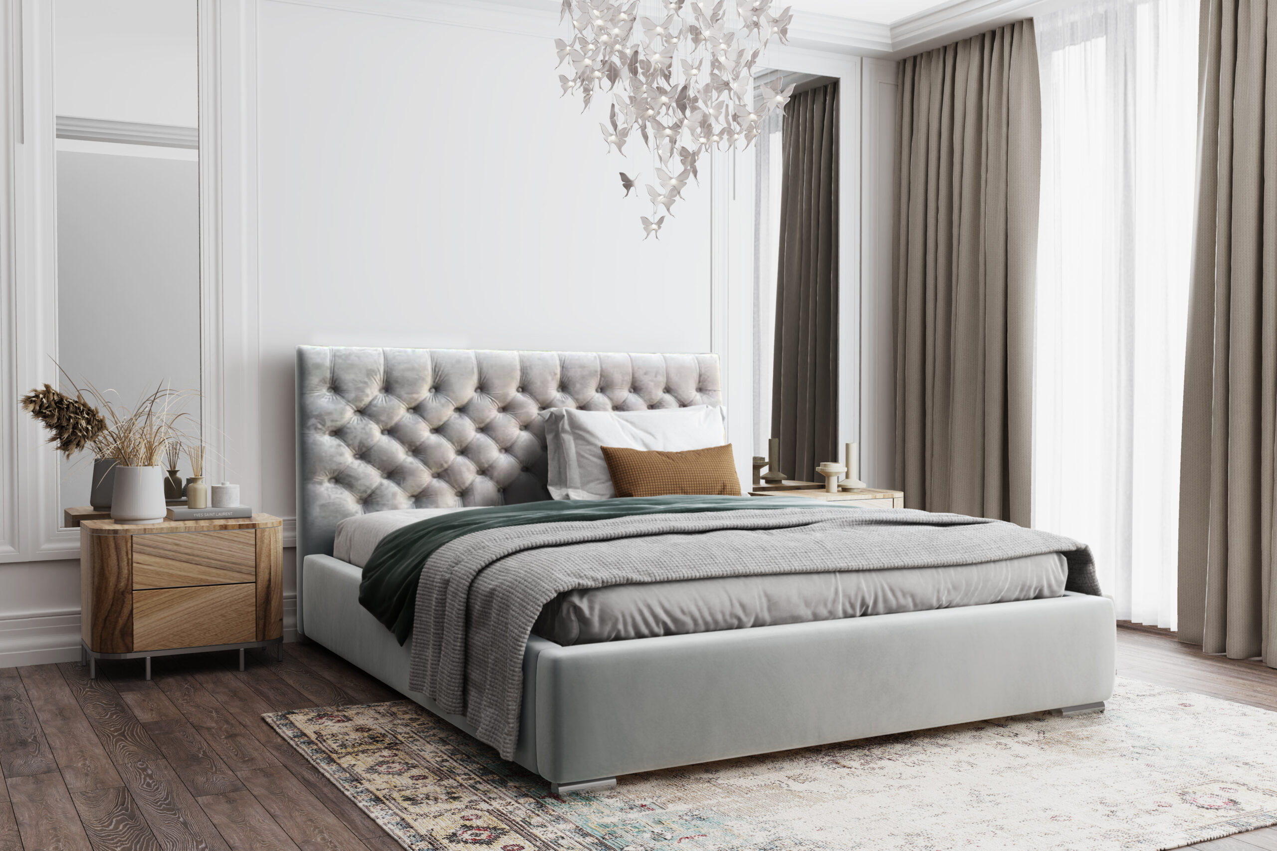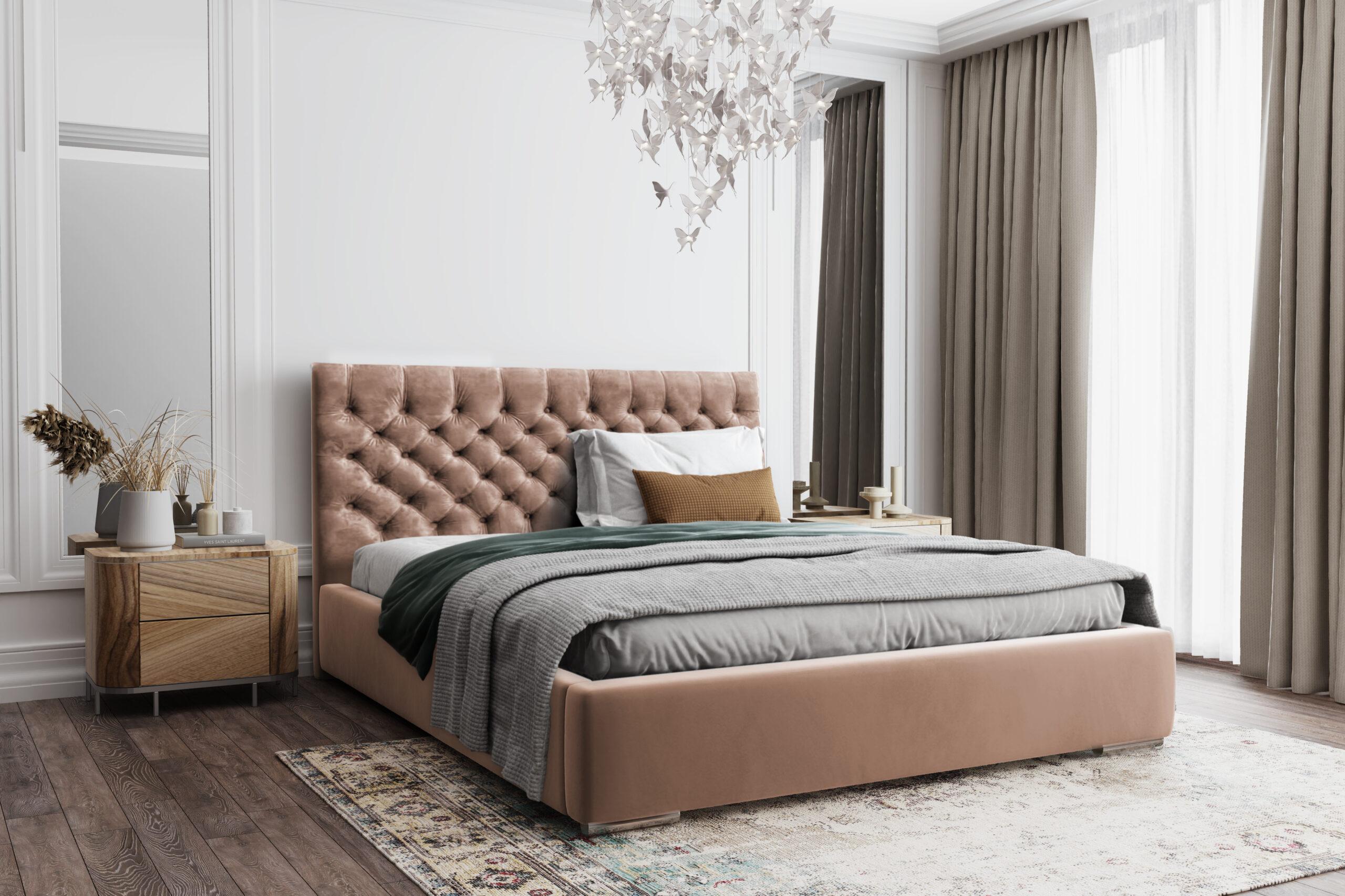 Łóżko tapicerowane Bello to wyjątkowe połączenie klasycznej elegancji i ponadczasowego stylu Chesterfield. Wysokie, miękko pikowane wezgłowie oraz przód łóżka ozdobione guzikami w kolorze tkaniny tworzą luksusowy efekt, który nadaje sypialni wyjątkowego charakteru. To idealny wybór dla osób ceniących tradycyjny design w nowoczesnym wydaniu.