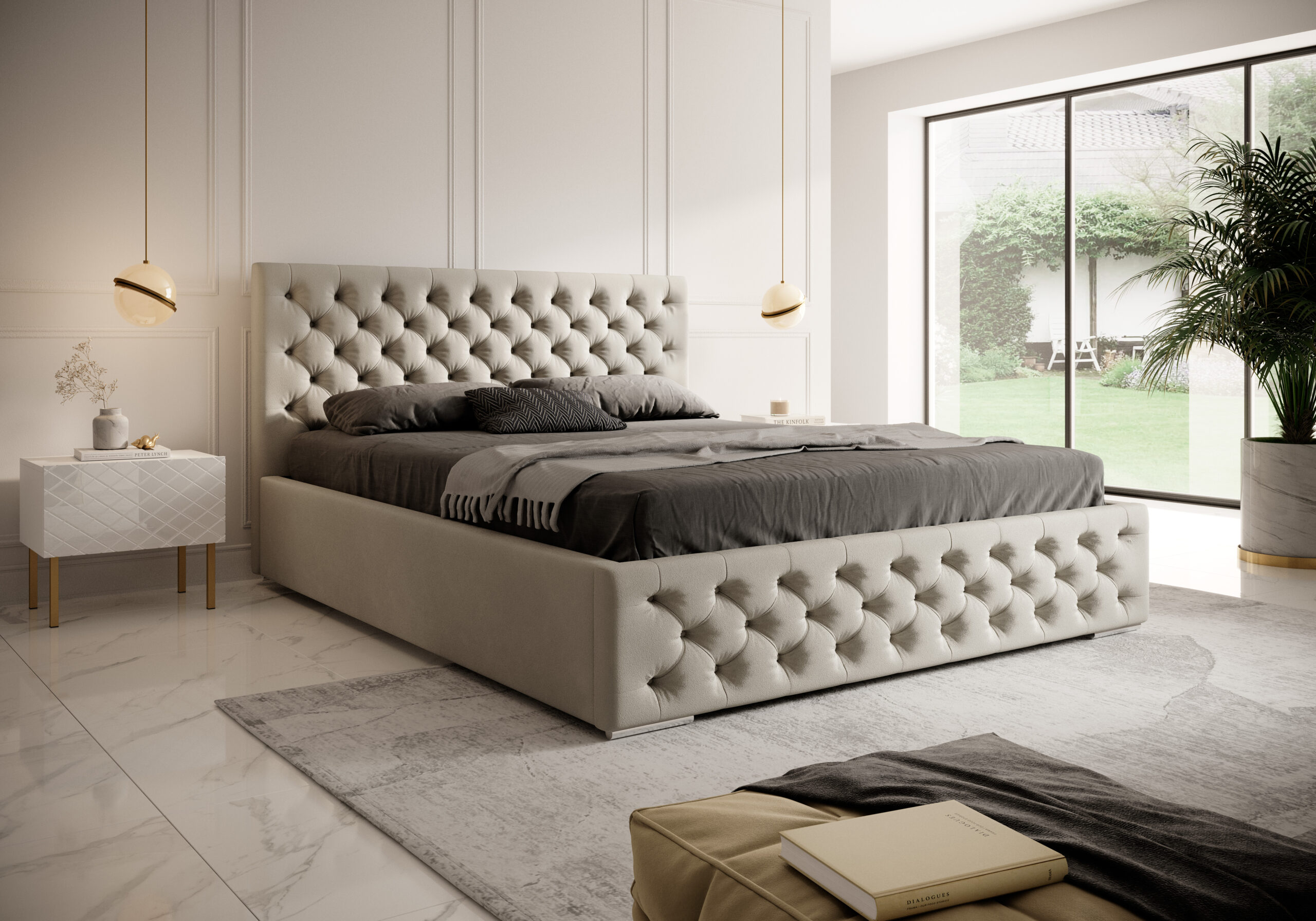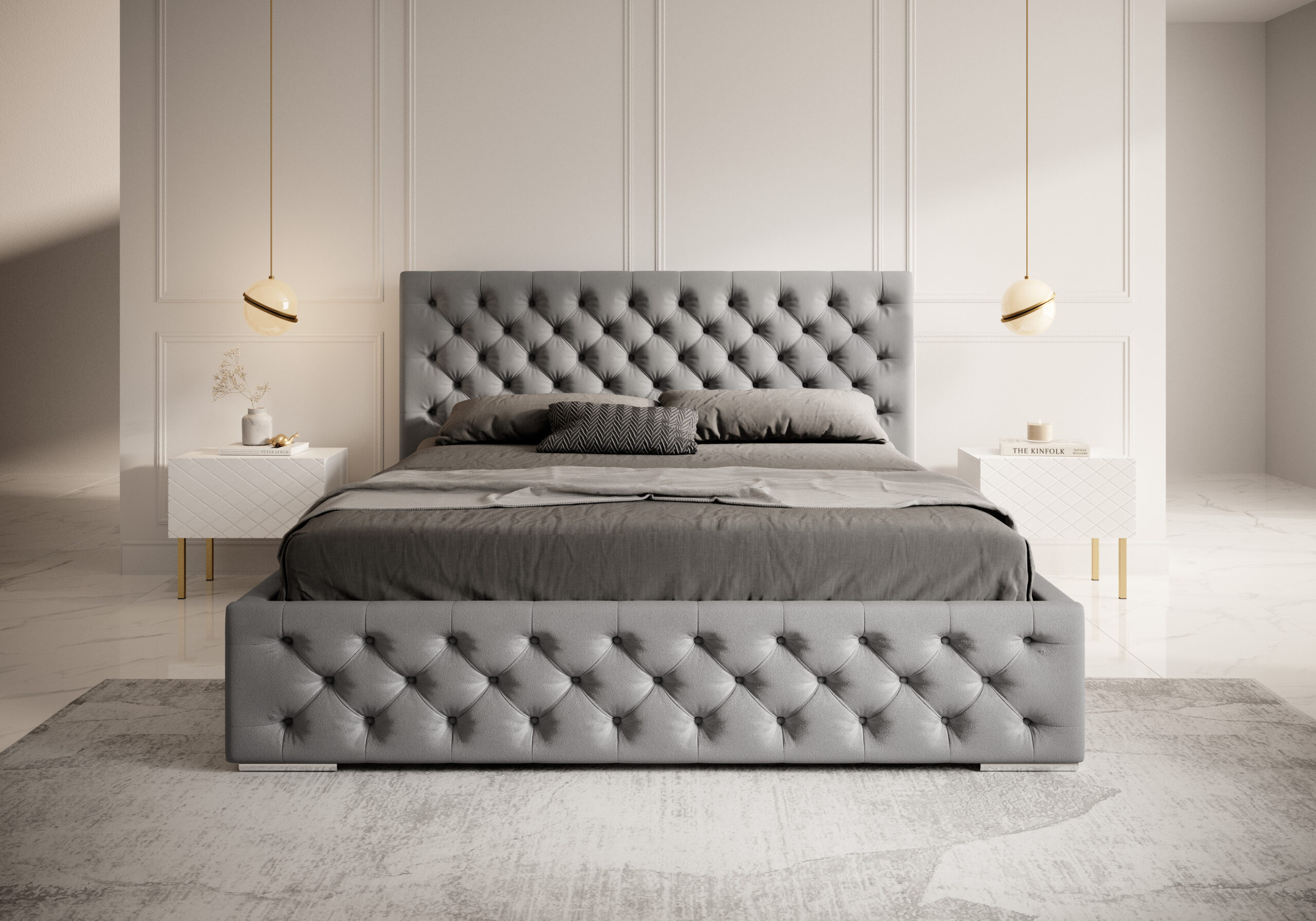 Łóżko tapicerowane Belluno to wyjątkowe połączenie klasycznej elegancji i ponadczasowego stylu Chesterfield. Wysokie, miękko pikowane wezgłowie oraz przód łóżka ozdobione guzikami w kolorze tkaniny tworzą luksusowy efekt, który nadaje sypialni wyjątkowego charakteru. To idealny wybór dla osób ceniących tradycyjny design w nowoczesnym wydaniu.