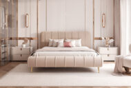 Łóżko tapicerowane Concord Slim 11N to wyjątkowy model, który łączy nowoczesną elegancję z najwyższym komfortem użytkowania. Charakterystyczne pionowe przeszycia z dekoracyjną lamówką podkreślają ekskluzywny charakter łóżka, a miękkie, zaokrąglone formy boków i przodu nadają mu subtelny, luksusowy wygląd.