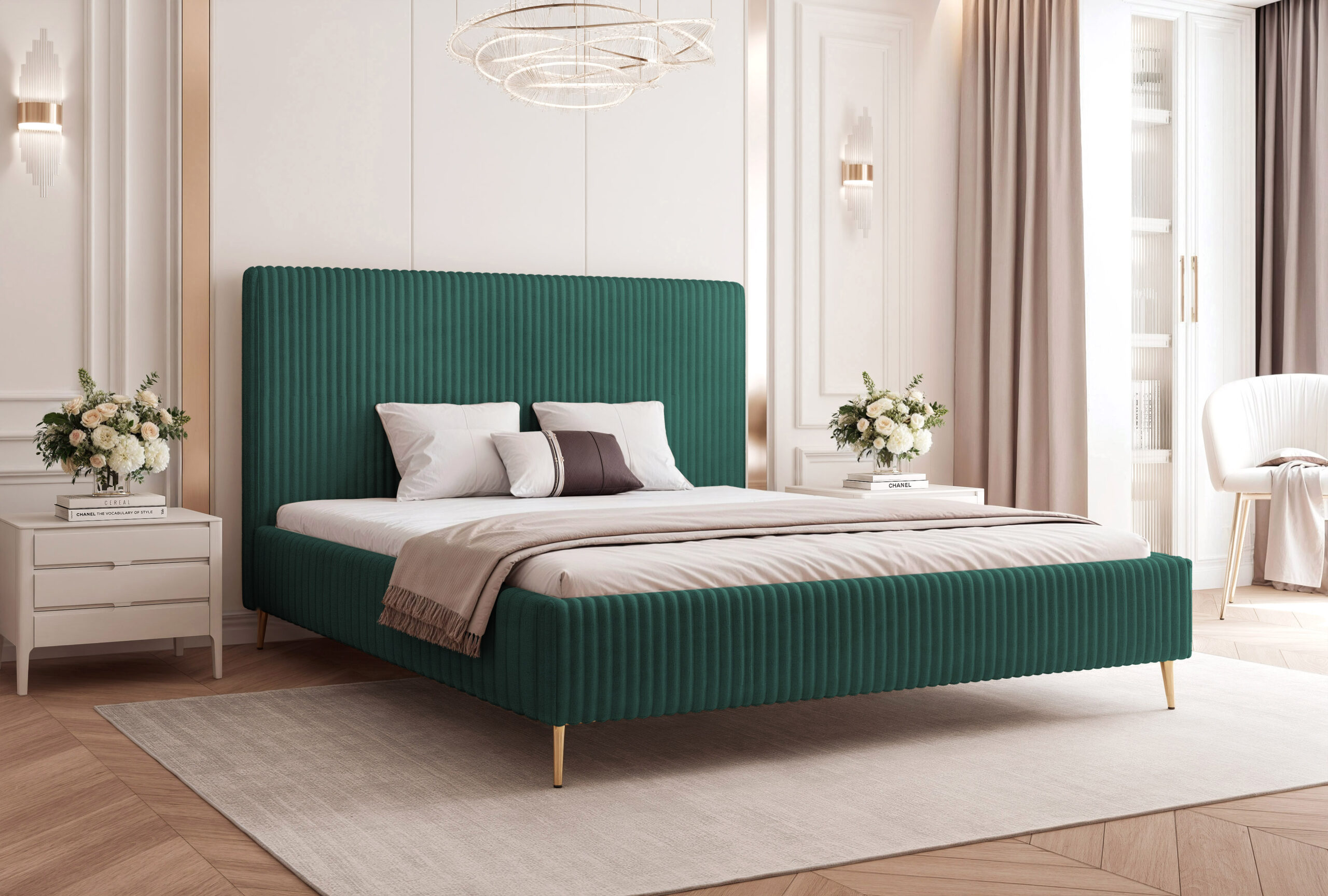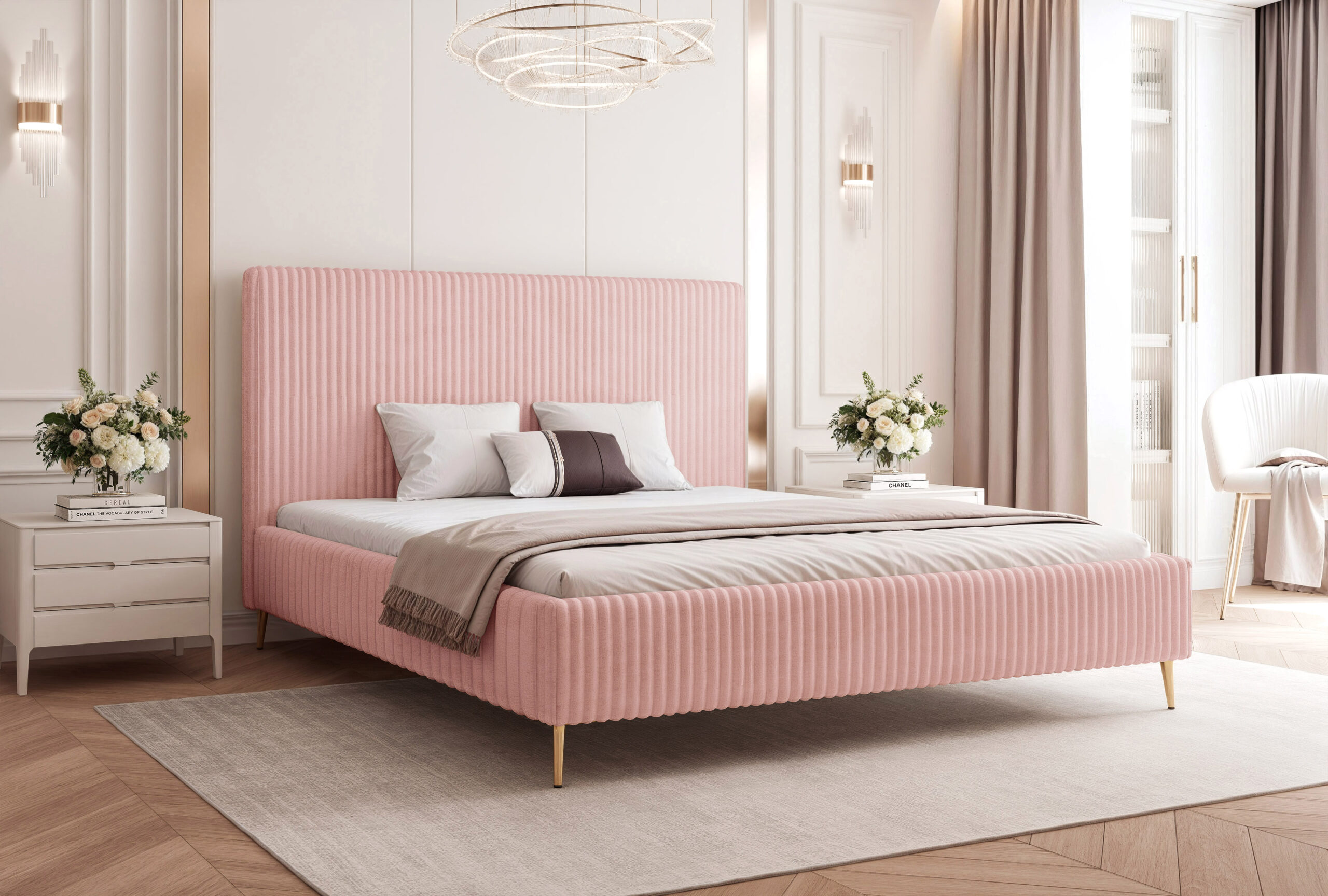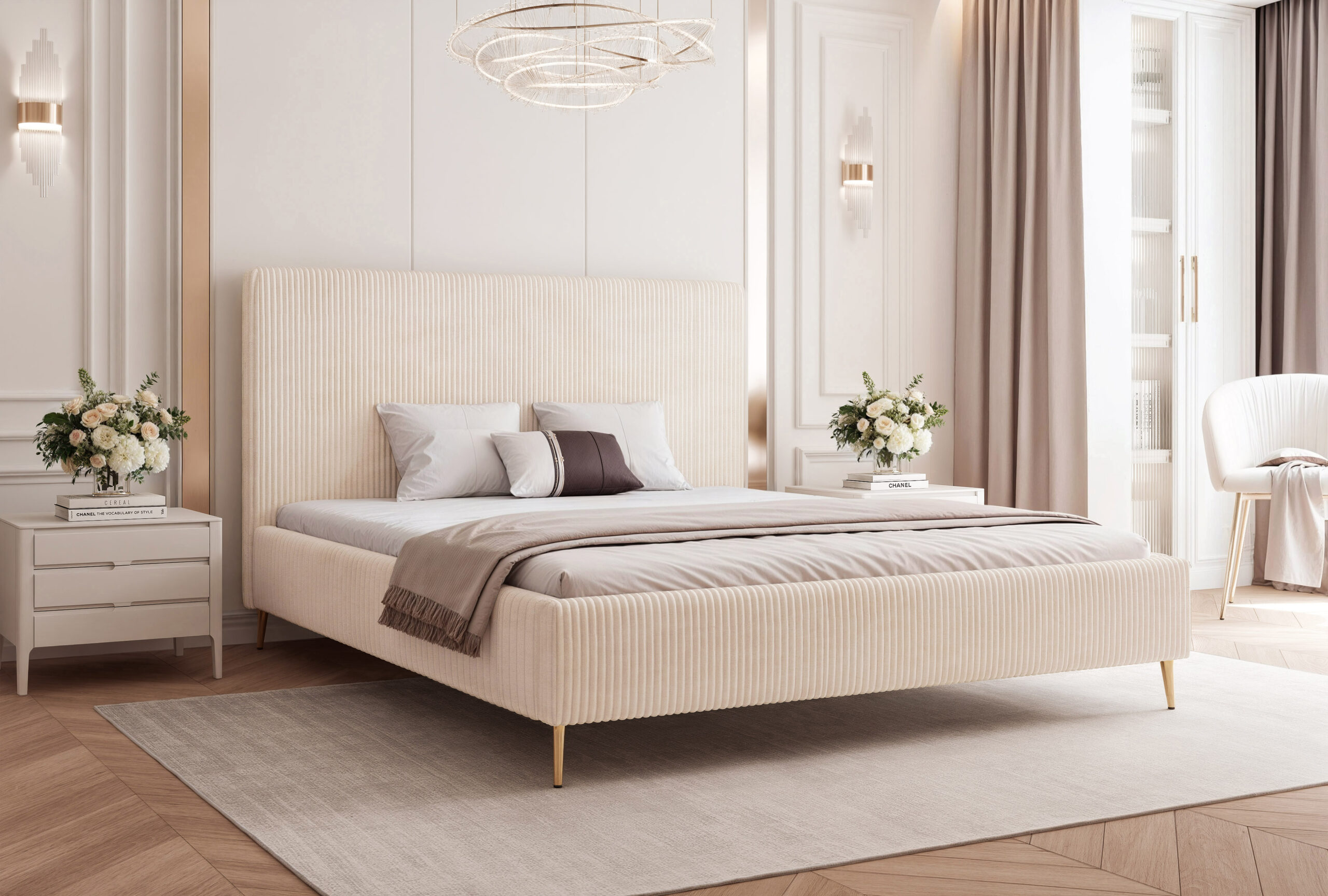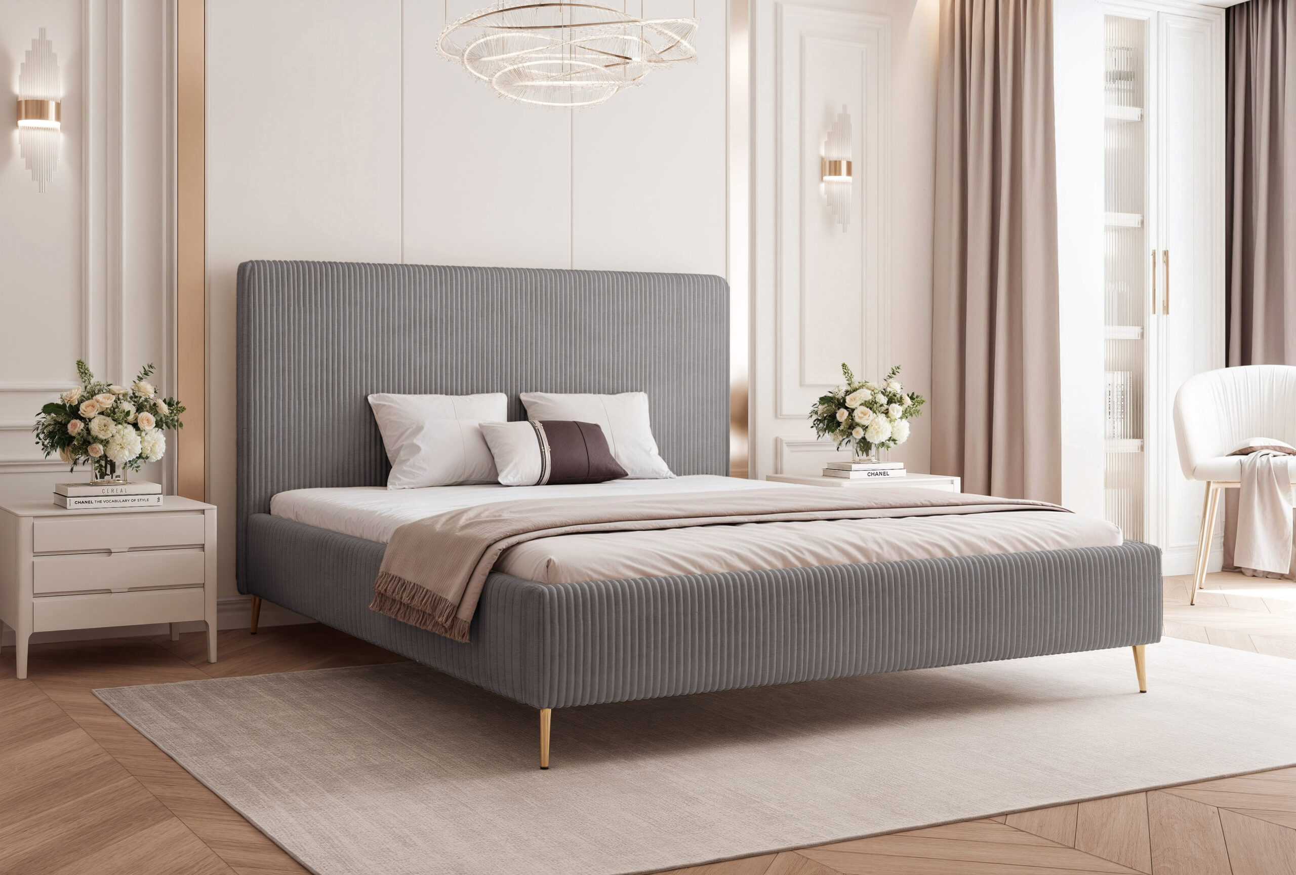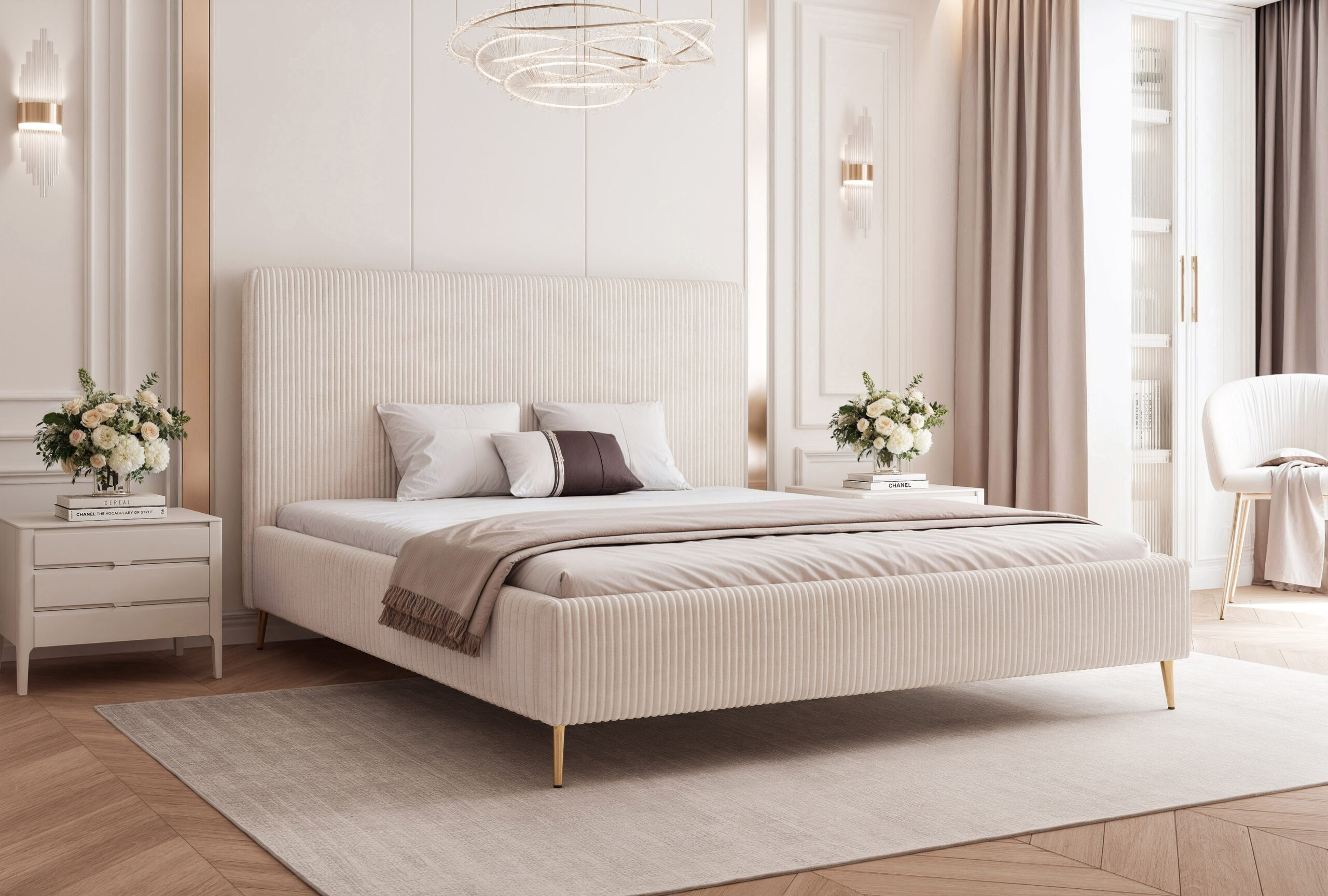 Smukła konstrukcja osadzona na wysokich, stylowych nogach sprawia, że łóżko wygląda lekko i przestronnie, a przy tym jest wyjątkowo praktyczne – ułatwia sprzątanie pod meblem i pozwala na lepszy przepływ powietrza.