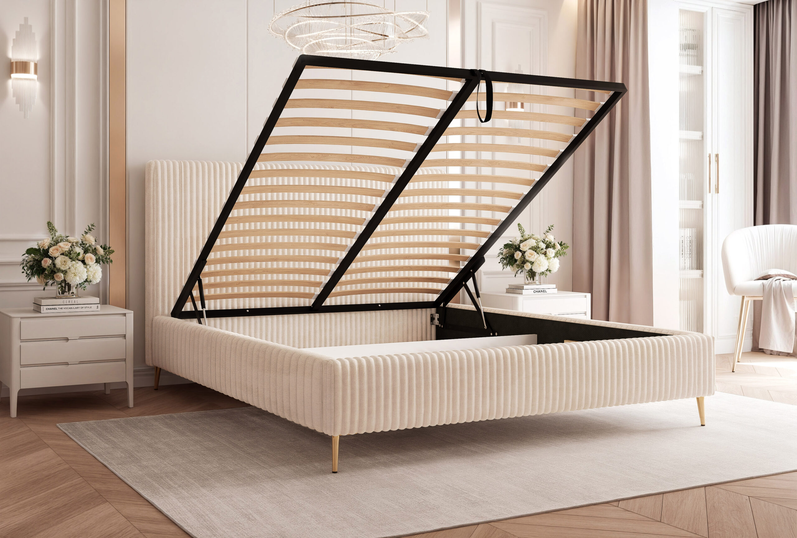 Łóżko tapicerowane Etoria z pojemnikiem na pościel