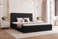 Szeroka gama tkanin obiciowych pozwala stworzyć łóżko w dowolnym stylu – od stonowanych beżów po głęboki granat czy butelkową zieleń.