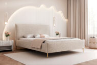 Delikatne zaokrąglenie krawędzi i subtelne linie sprawiają, że łóżko wygląda wyjątkowo stylowo, a jednocześnie przytulnie.