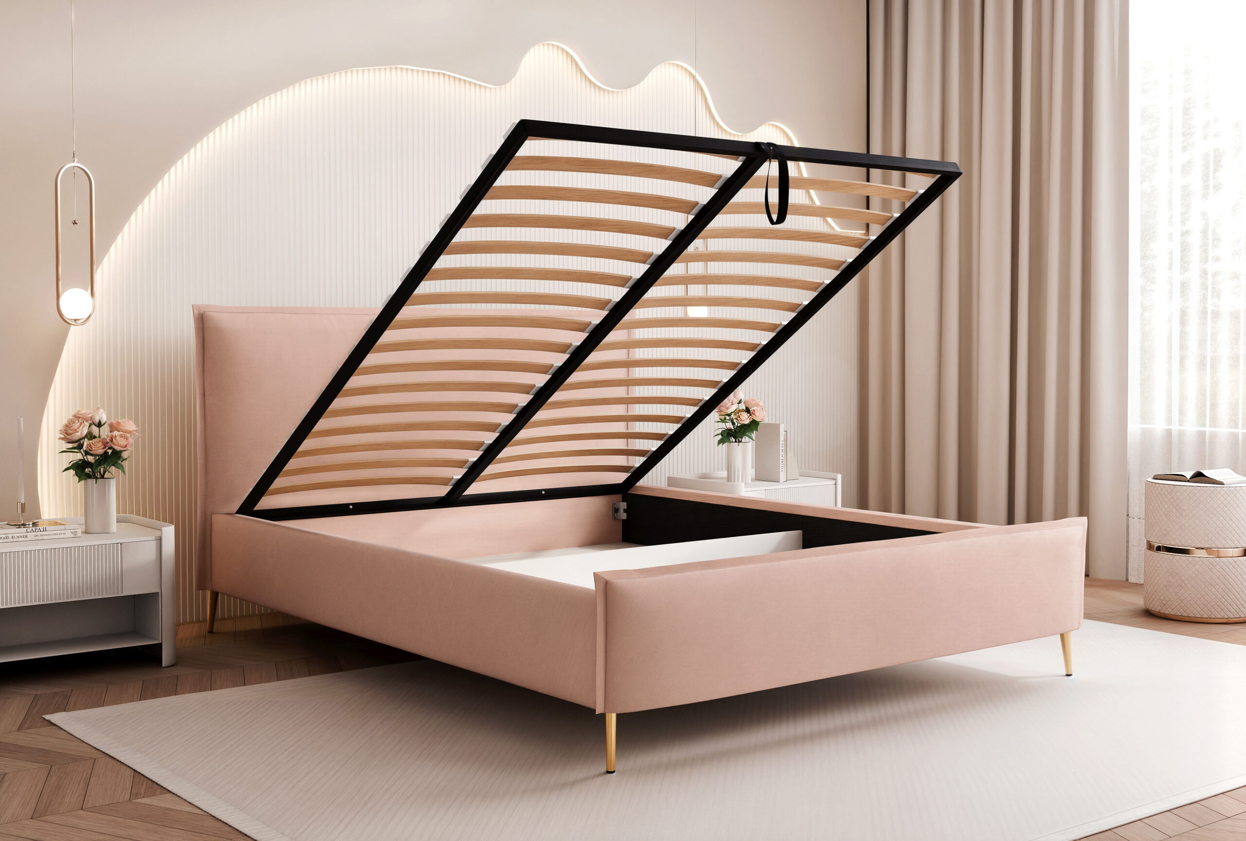 Dzięki szerokiemu wyborowi tkanin obiciowych i kolorów, łóżko można w pełni dopasować do wystroju sypialni – od delikatnych, pastelowych odcieni po intensywne, głębokie barwy.
