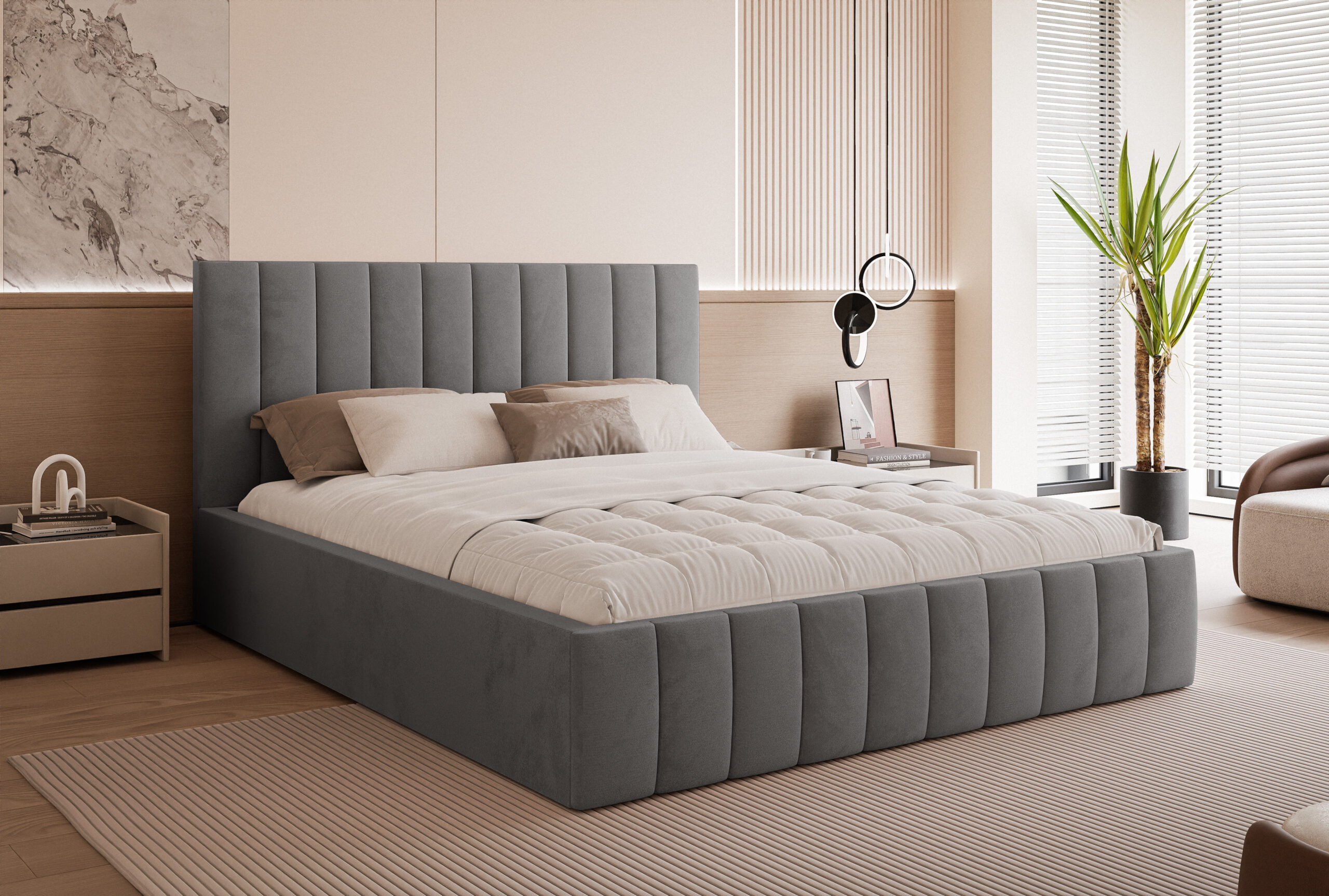 Łóżko tapicerowane Concord Slim 4 to propozycja dla osób, które cenią połączenie elegancji, nowoczesnego designu i wysokiej funkcjonalności. Jego charakterystyczne, pionowe przeszycia na wysokim zagłówku dodają wnętrzu luksusowego charakteru i sprawiają, że łóżko staje się centralnym punktem sypialni.