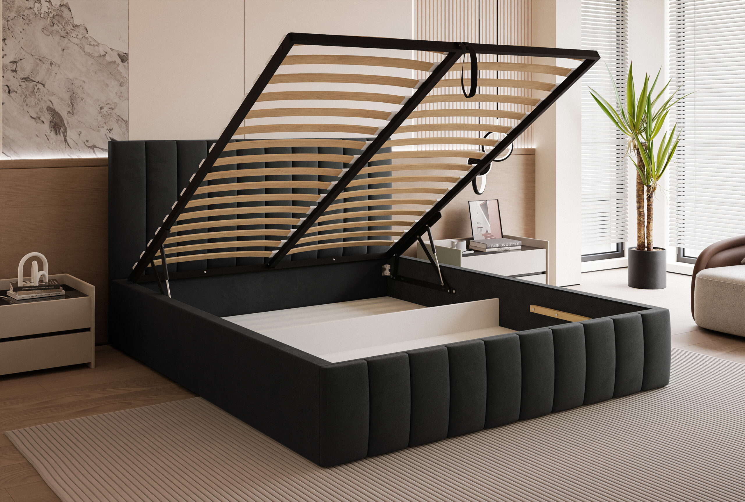 Model Slim 4 został wyposażony w praktyczny pojemnik na pościel pod całą powierzchnią spania. Dzięki solidnemu drewnianemu stelażowi z podnośnikami sprężynowymi codzienne korzystanie z pojemnika jest niezwykle wygodne, a dodatkowe miejsce do przechowywania ułatwia utrzymanie porządku w sypialni.