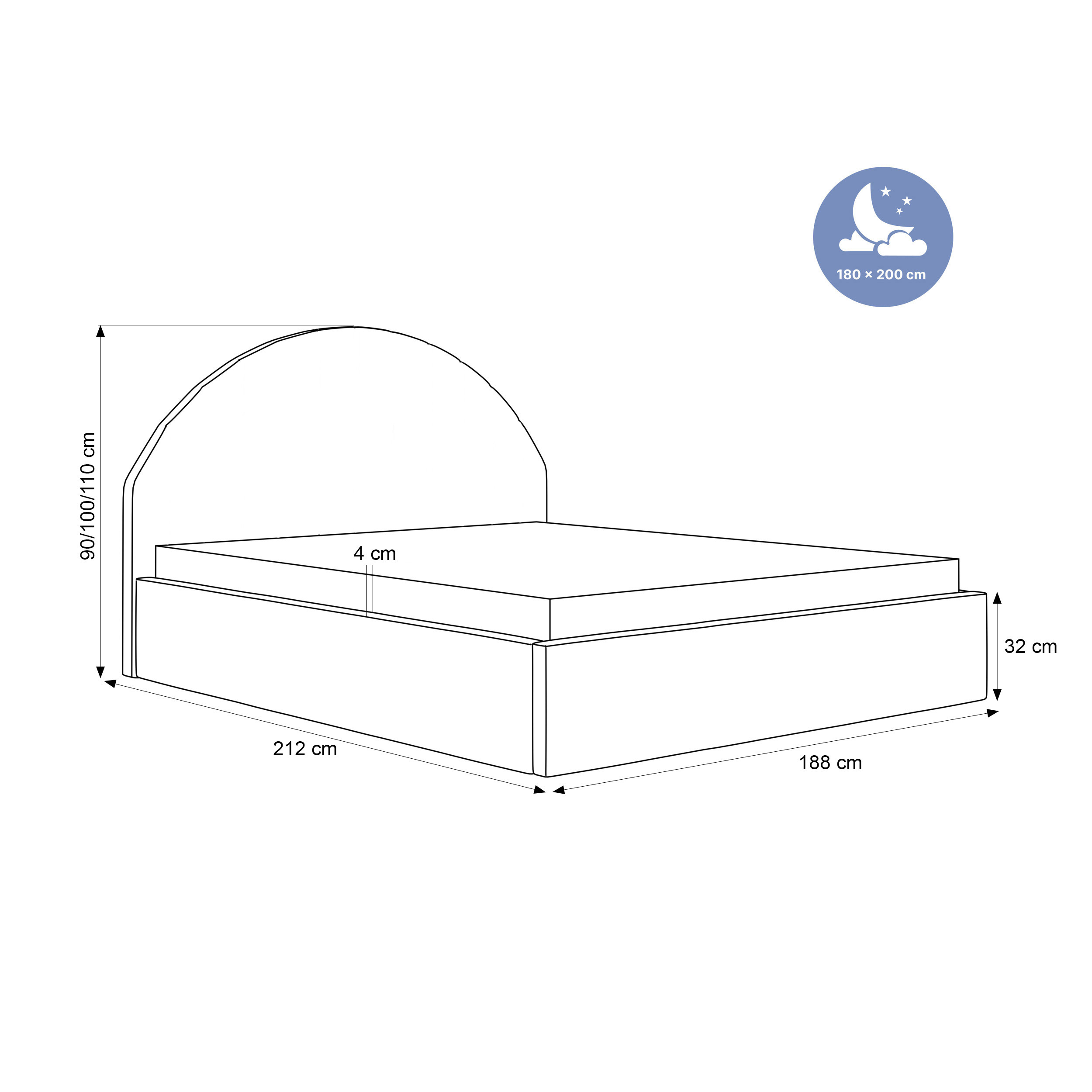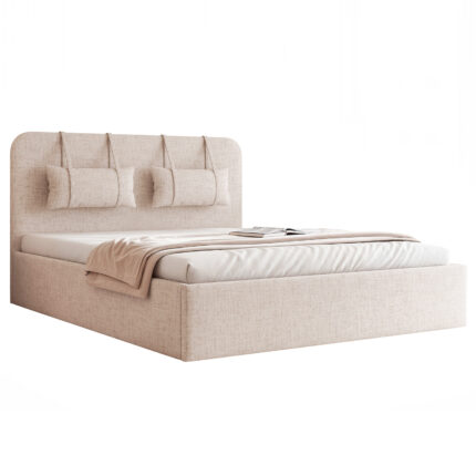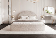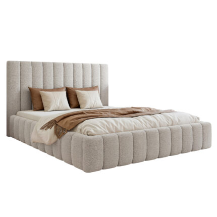 Łóżko dostępne jest w różnych rozmiarach – 120×200, 140×200, 160×200, 180×200 oraz 200×200 cm – i z możliwością wyboru wysokości zagłówka: 90 cm lub 110 cm. Bogata paleta tkanin obiciowych pozwala stworzyć łóżko idealnie dopasowane do stylu wnętrza – od klasycznych, jasnych sypialni po nowoczesne, minimalistyczne aranżacje.