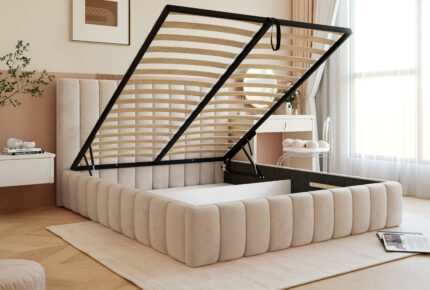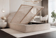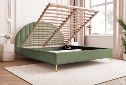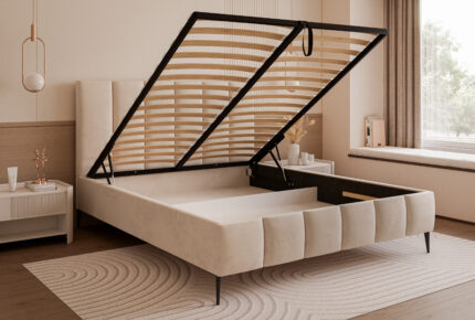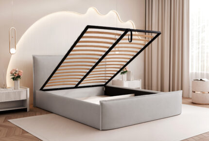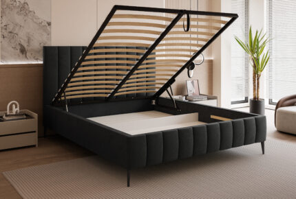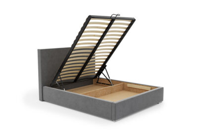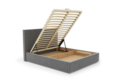 Model Slim 8 został wyposażony w pojemny schowek na pościel pod całą powierzchnią spania, co zapewnia dodatkową przestrzeń do przechowywania i wygodę użytkowania. Stelaż z podnośnikami sprężynowymi, wliczony w cenę, gwarantuje trwałość oraz łatwy dostęp do pojemnika.