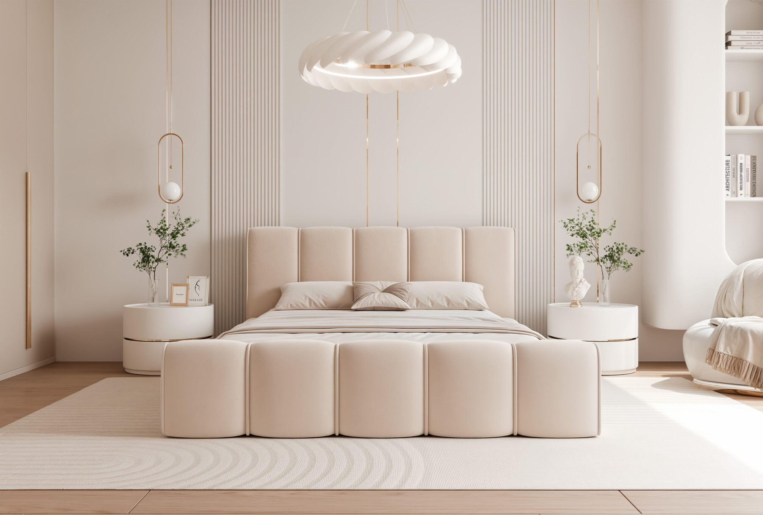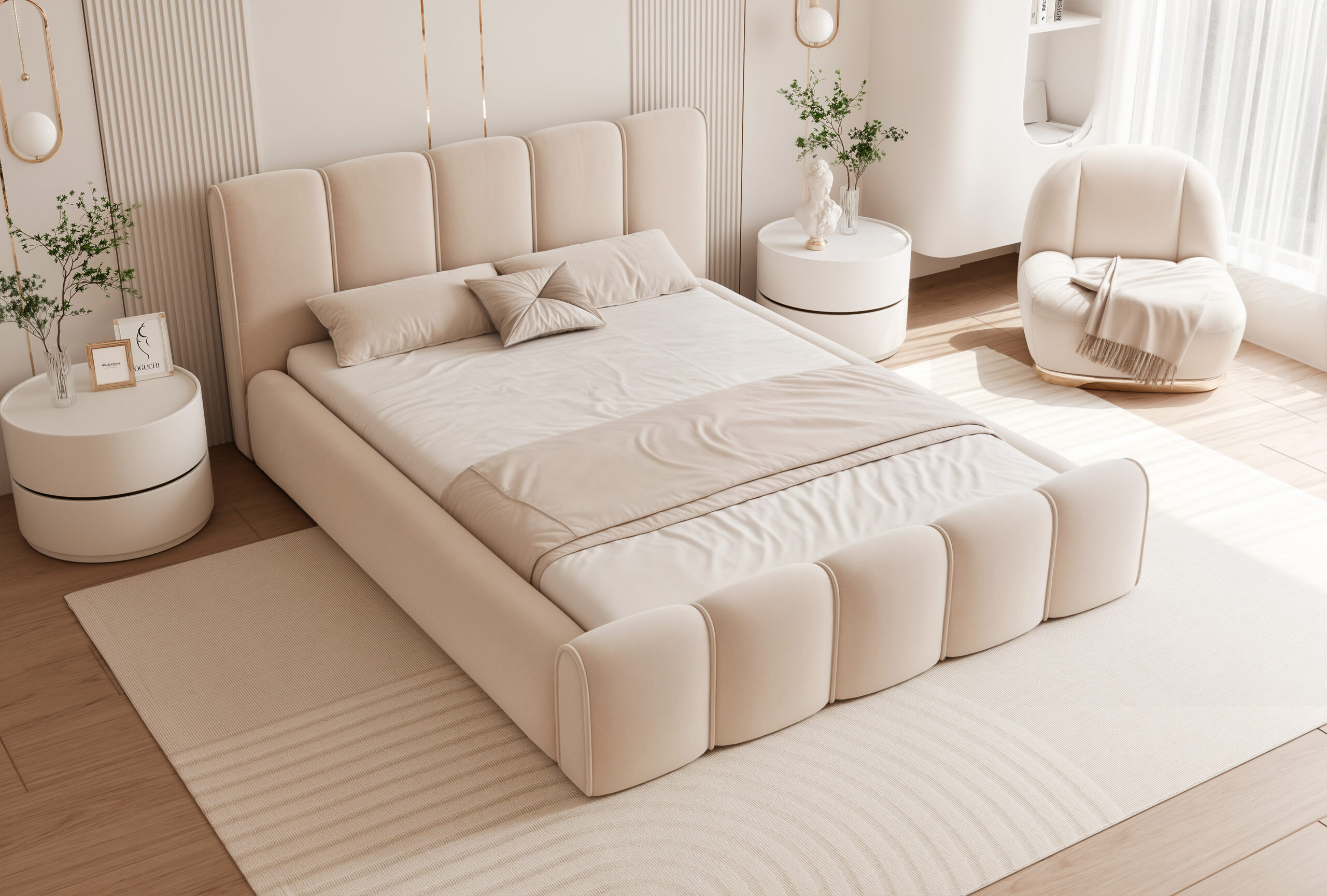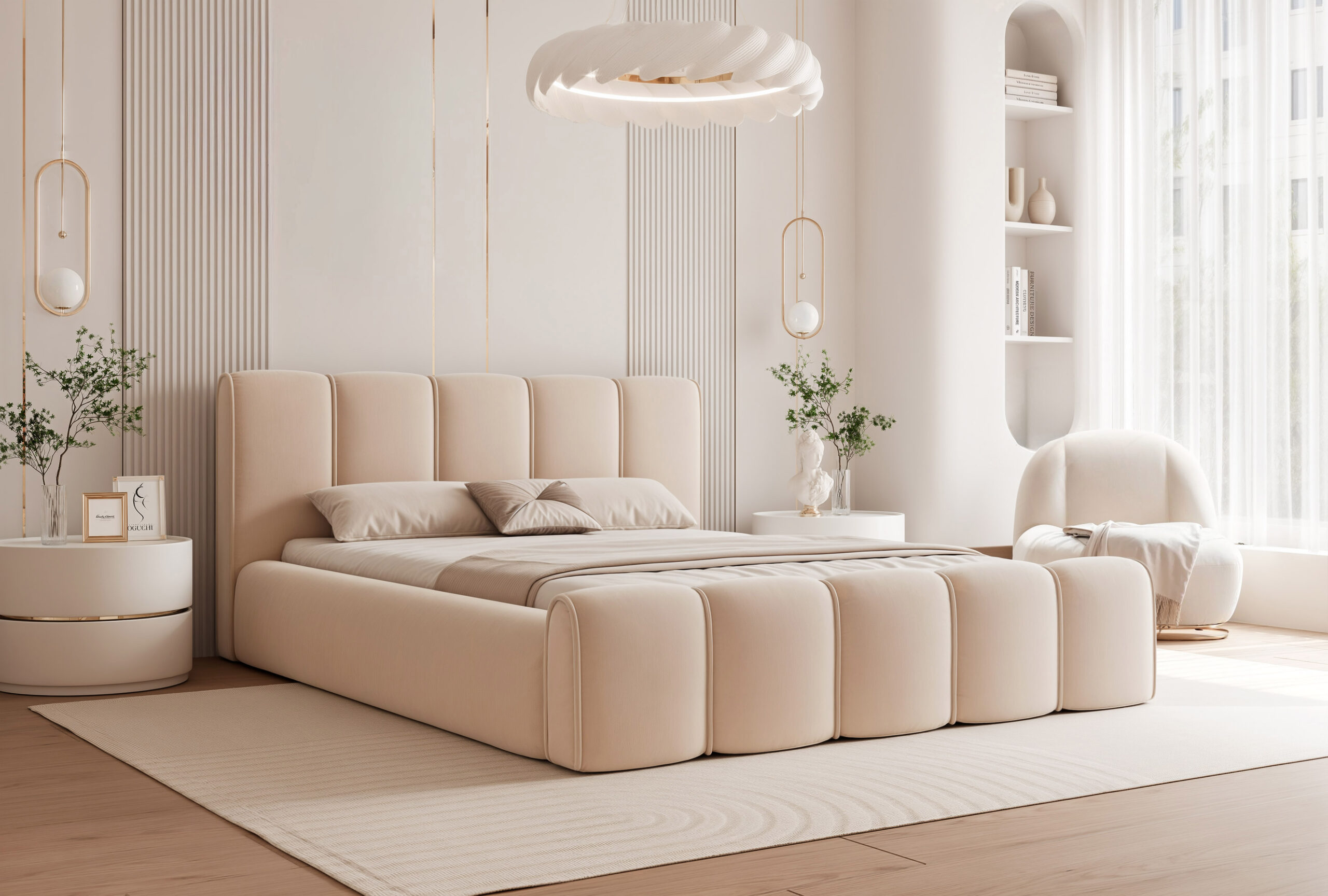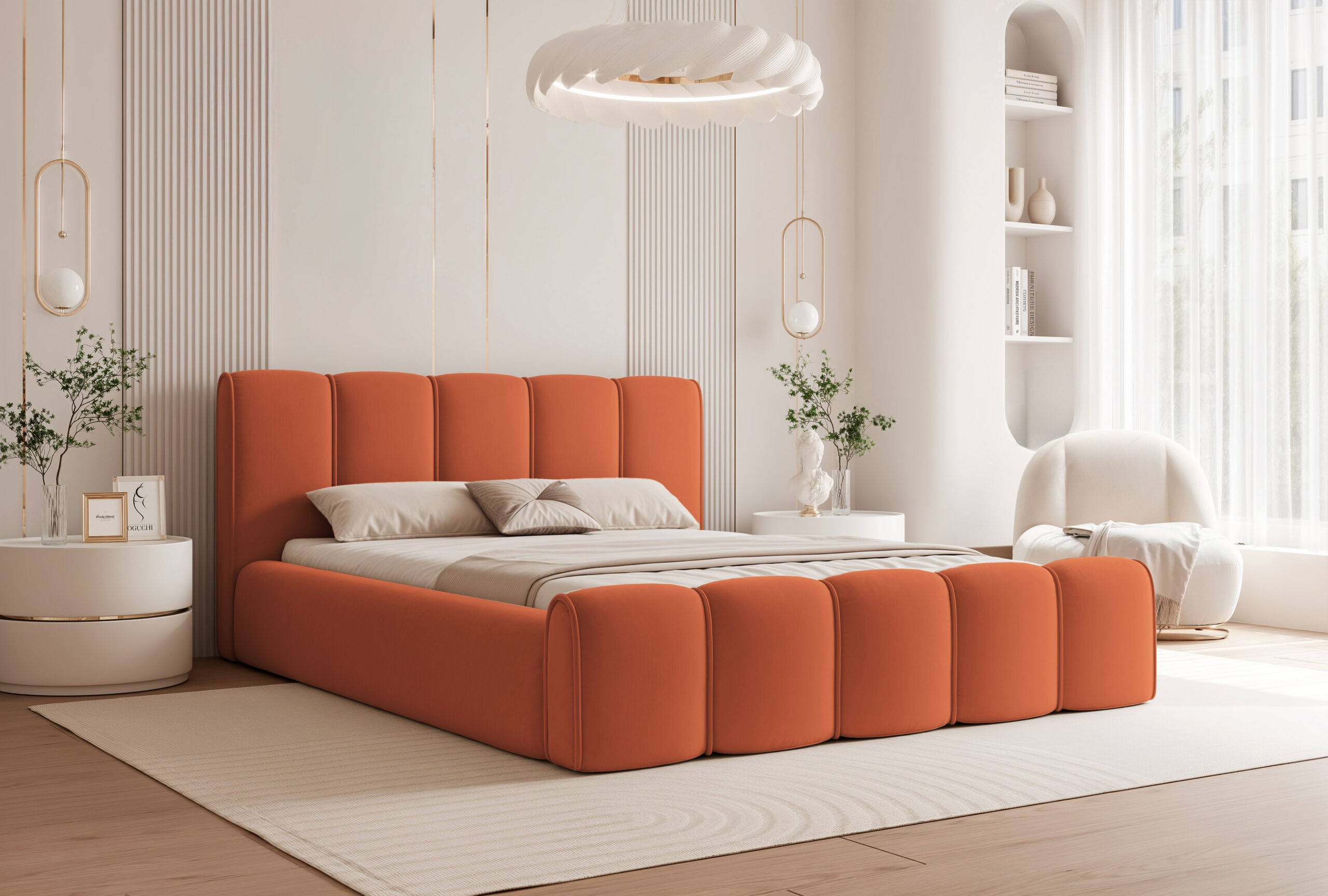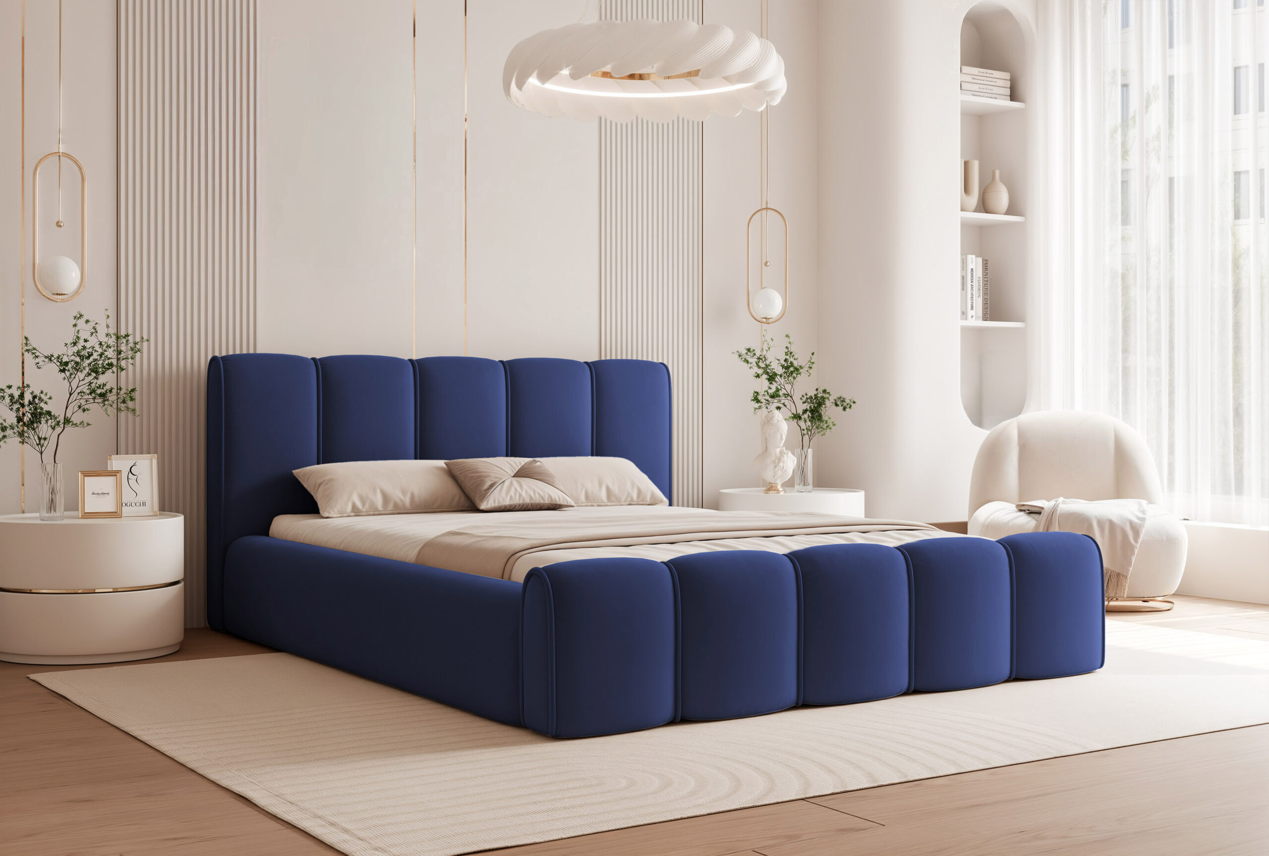 Łóżko tapicerowane Lareno z pojemnikiem na pościel to połączenie nowoczesnej elegancji z ponadczasowym stylem i wyjątkowym komfortem. Jego subtelna, zaokrąglona forma oraz wykończenia z dekoracyjną lamówką sprawiają, że mebel staje się centralnym punktem każdej sypialni — wprowadzając do niej harmonię i przytulny klimat.