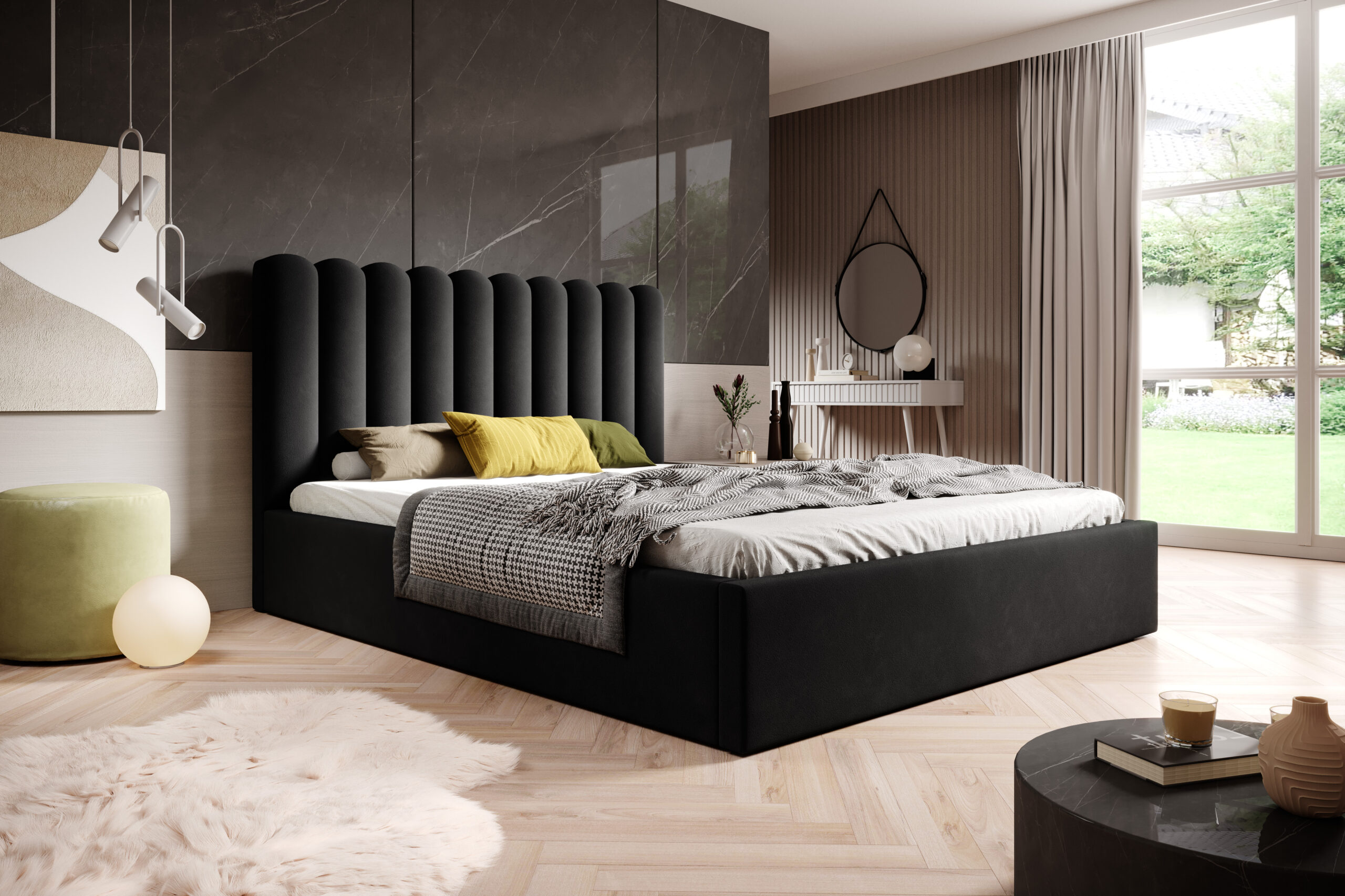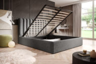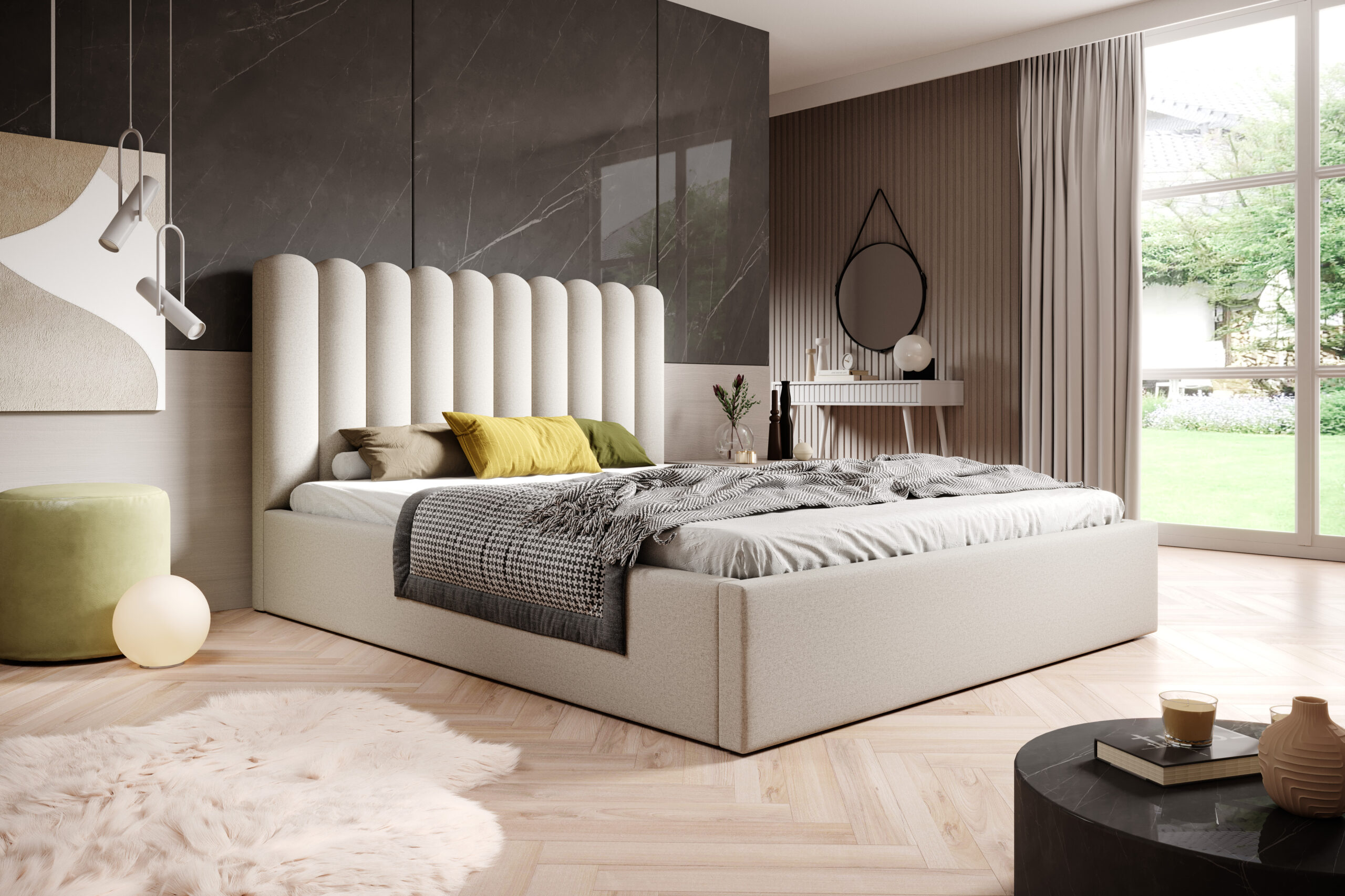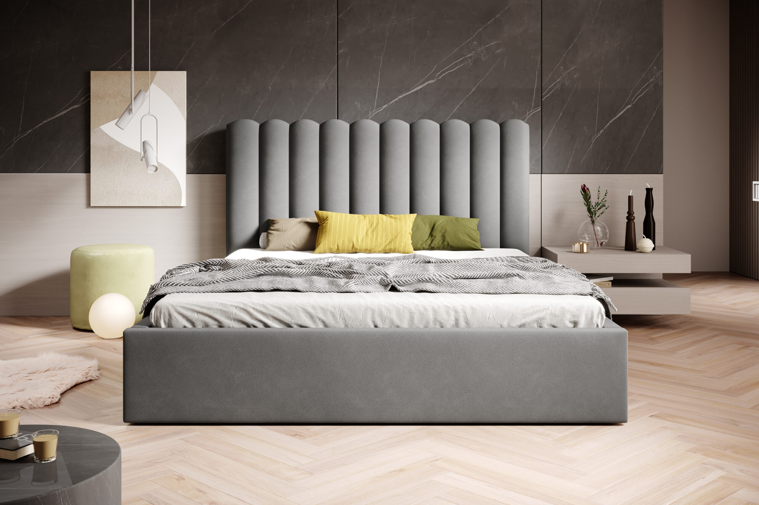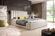 Łóżko tapicerowane Mediolan z pojemnikiem na pościel to nowoczesny i wyjątkowo elegancki mebel, który łączy wygodę, funkcjonalność oraz styl. Wysokie wezgłowie z charakterystycznymi, pionowymi uwypukleniami nadaje łóżku efekt luksusu i głębi, stając się centralnym punktem każdej sypialni. To model zaprojektowany z myślą o osobach, które cenią design, komfort i solidne wykonanie.