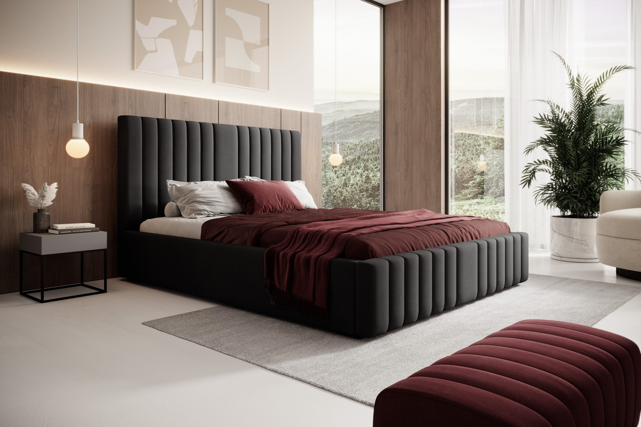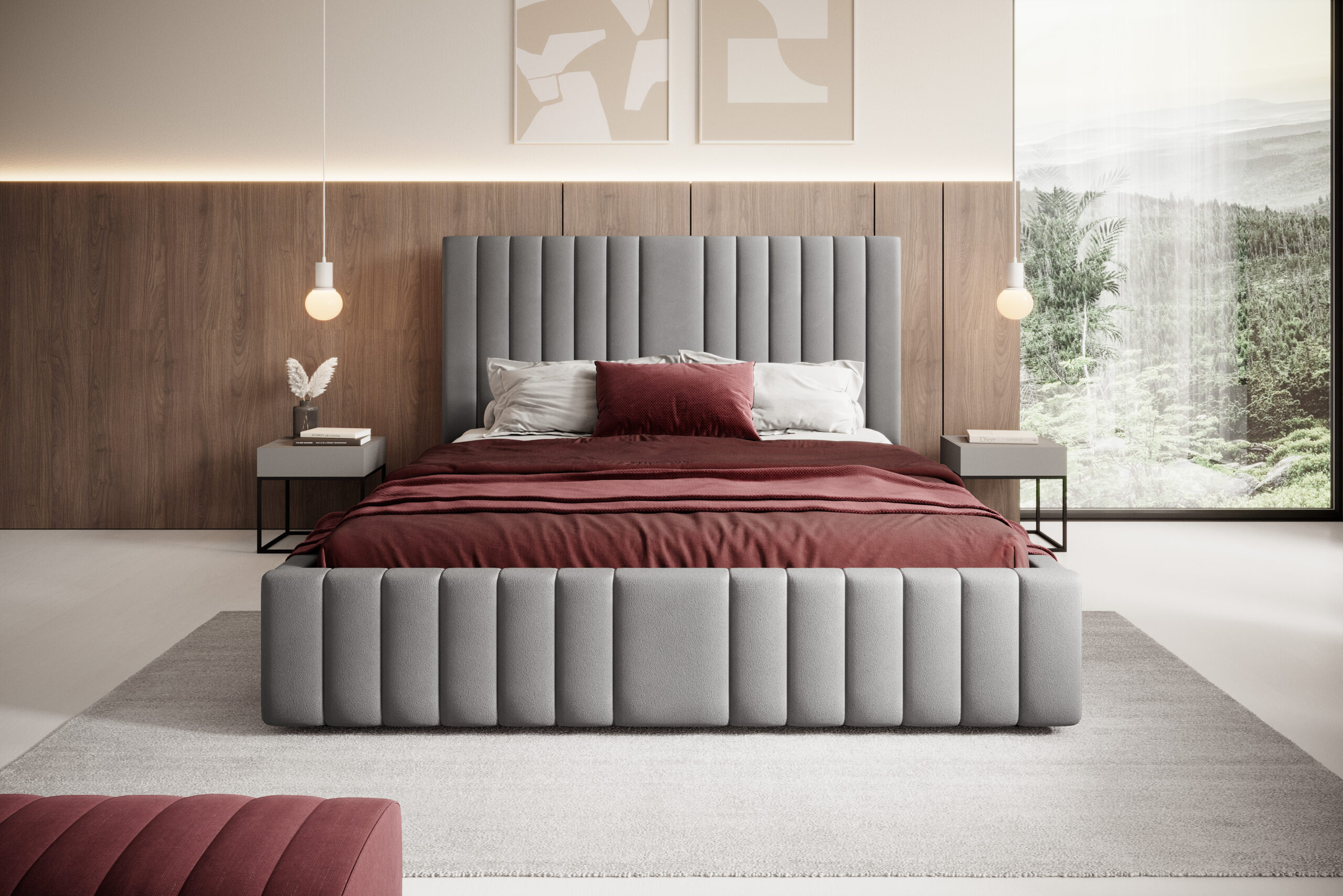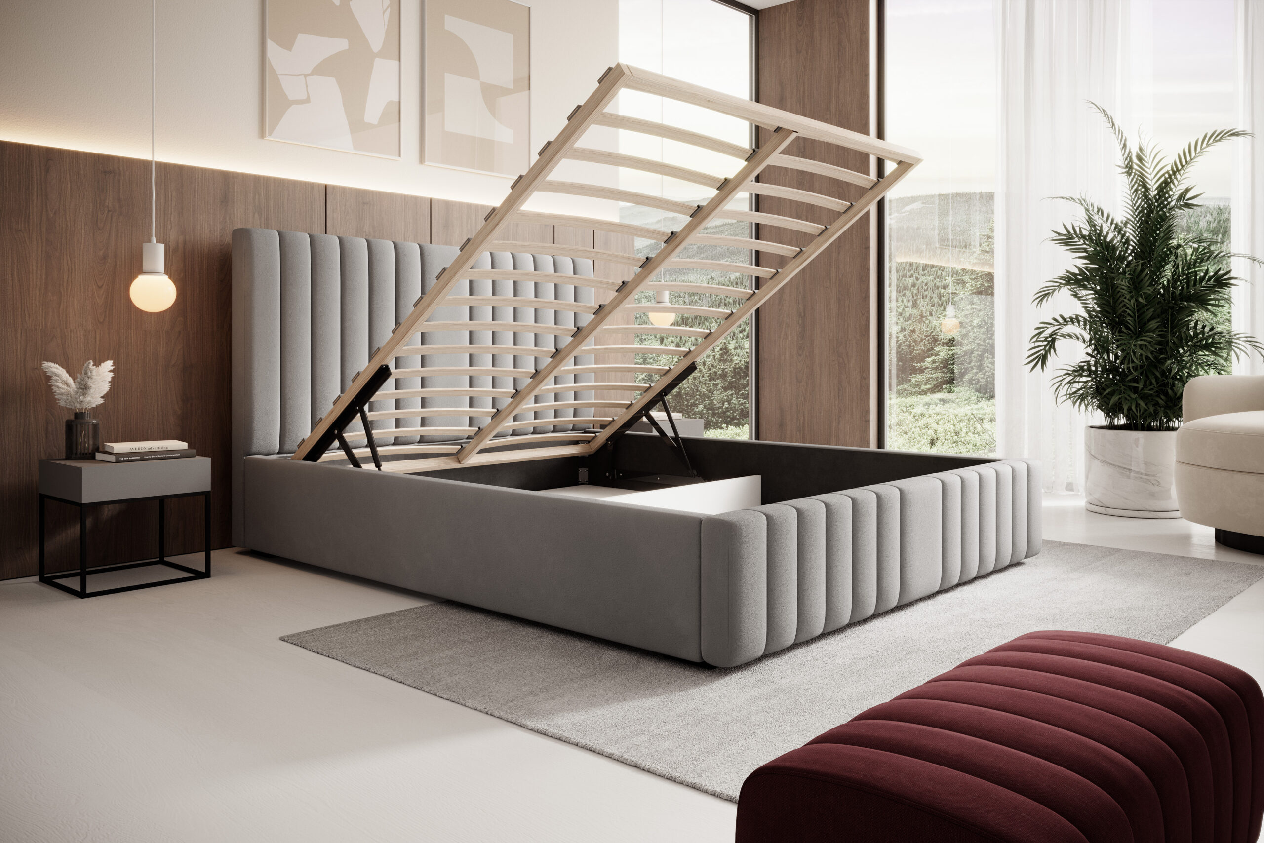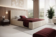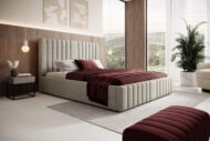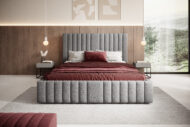 Łóżko tapicerowane Siena z pojemnikiem na pościel to elegancki i funkcjonalny mebel, który łączy wygodę użytkowania z nowoczesnym stylem. Wysokie, pionowo pikowane wezgłowie o miękkiej strukturze dodaje wnętrzu luksusu i stanowi efektowną ozdobę każdej sypialni. Dzięki minimalistycznej formie i precyzyjnemu wykończeniu łóżko Siena doskonale komponuje się zarówno w aranżacjach nowoczesnych, jak i klasycznych.