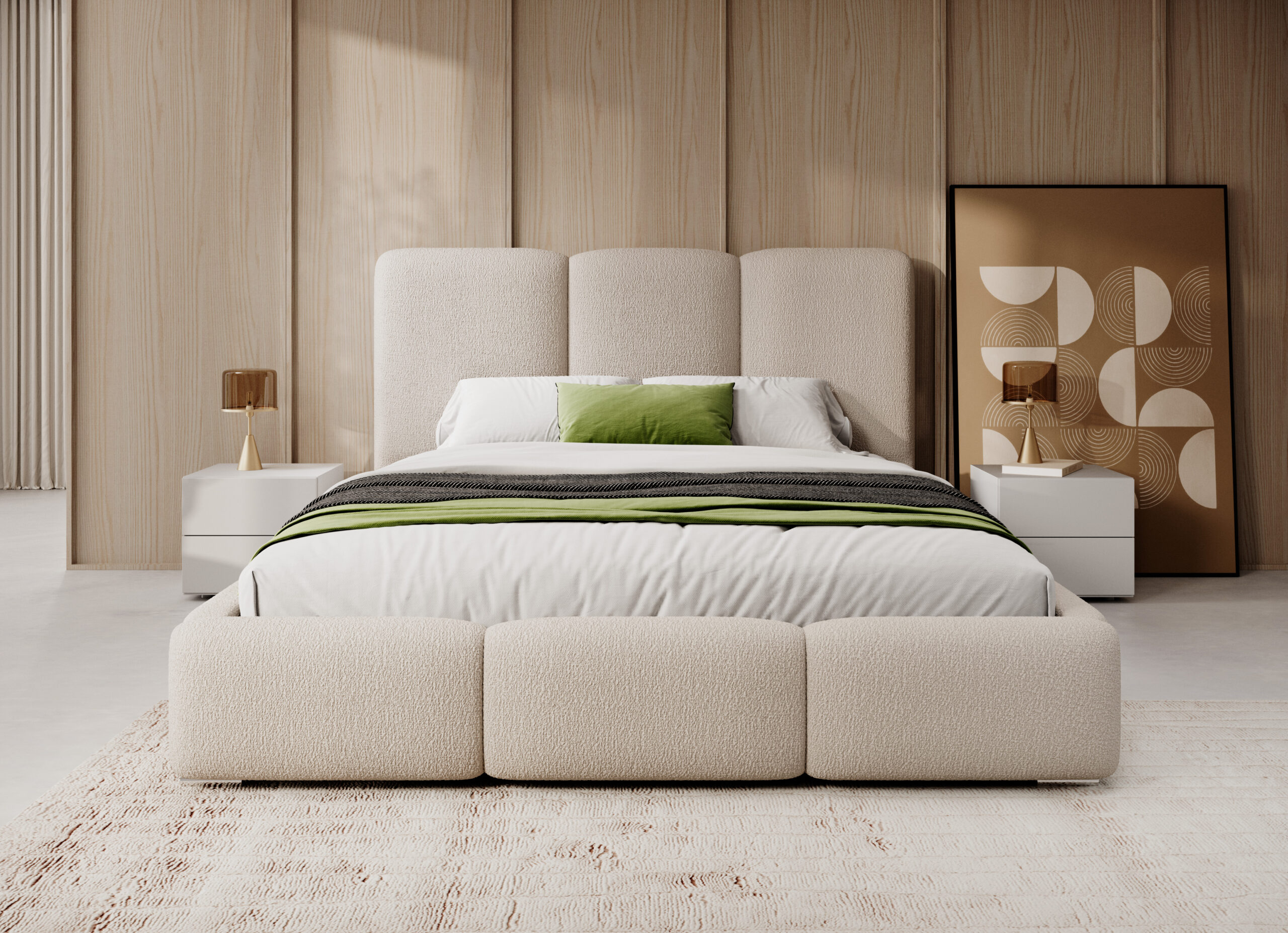 Wysokie wezgłowie wykonane z pianki o grubości 4 cm i owaty 3 cm stanowi wygodne oparcie podczas wieczornego relaksu. Tapicerka dostępna jest w szerokiej gamie tkanin i kolorów, dzięki czemu każdy może dopasować łóżko do swojego wnętrza.