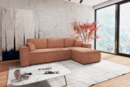 Prosta, elegancka forma narożnika uzupełniona jest subtelnymi przeszyciami i miękkimi poduszkami oparciowymi, które nadają mu wyjątkowego charakteru. Model Corti L wyróżnia się niskim, szerokim siedziskiem oraz stabilną konstrukcją opartą na drewnianym stelażu.