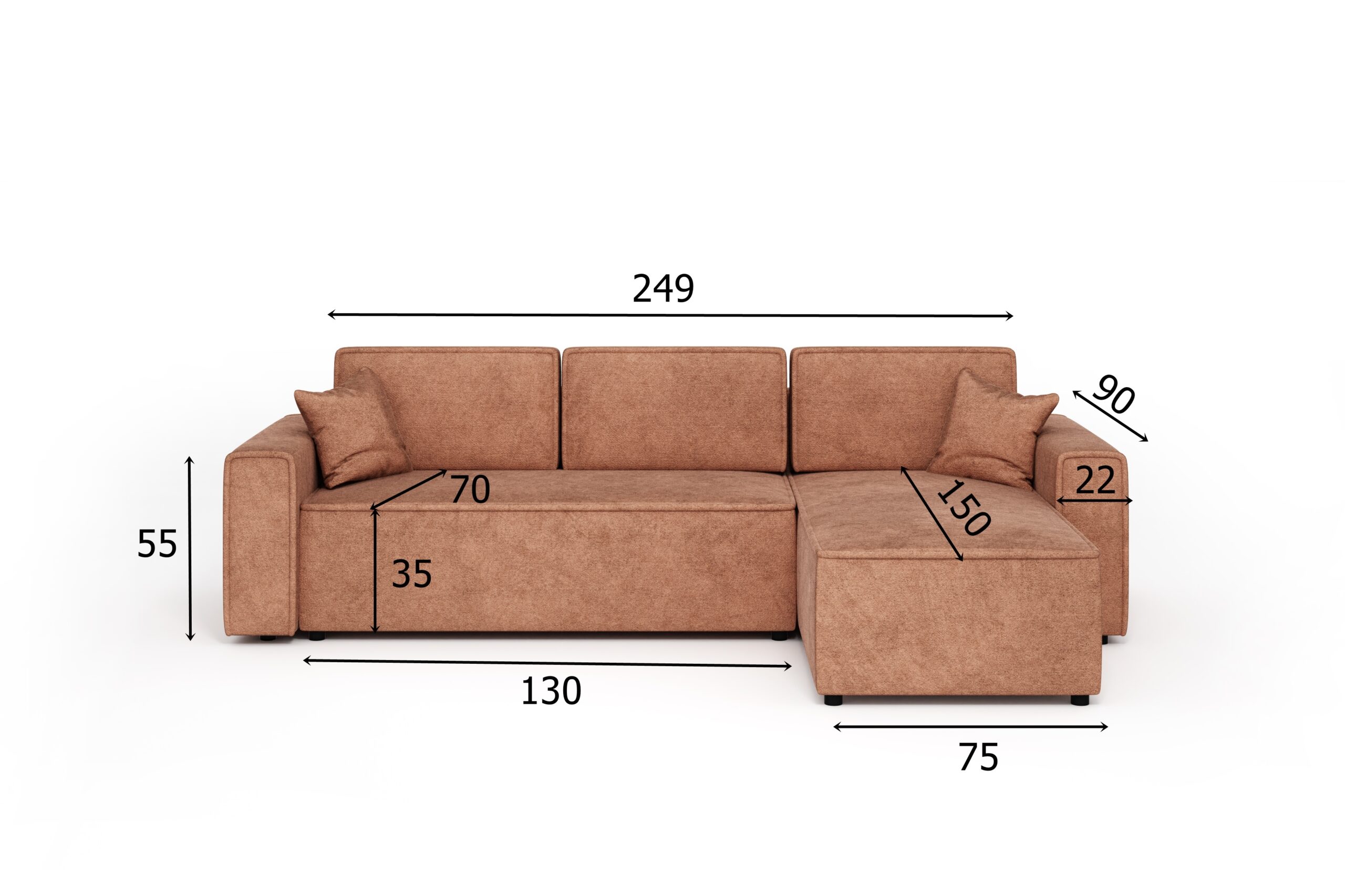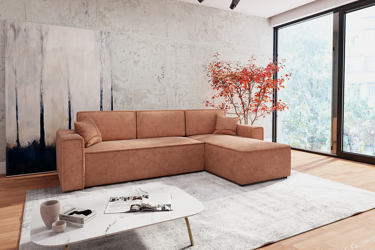 Narożnik tapicerowany Corti L to połączenie nowoczesnego designu, komfortu i praktyczności. Ten model w kształcie litery L doskonale sprawdzi się w salonie, oferując wygodne miejsce do wypoczynku w ciągu dnia i funkcję spania na noc.