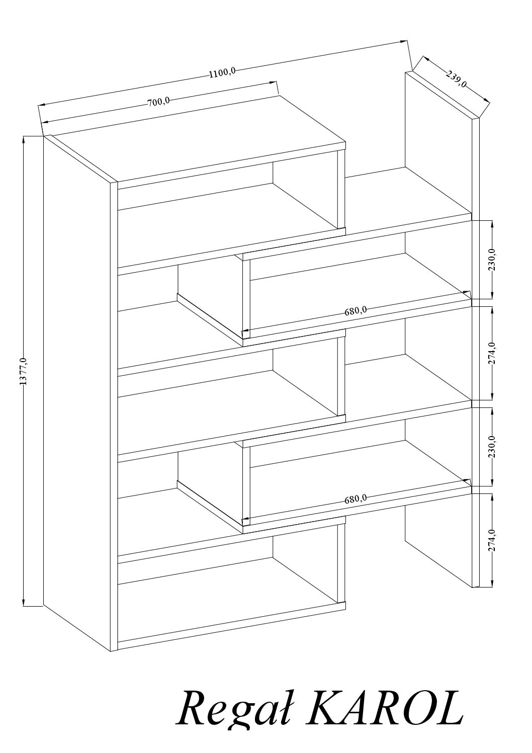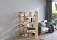 Szukasz mebla, który jednocześnie eksponuje, porządkuje i dzieli przestrzeń? Regał KAROL 01 to lekka wizualnie, ażurowa konstrukcja z półkami o różnej wysokości, która świetnie sprawdza się jako regał na książki i dekoracje oraz mobilna ścianka działowa oddzielająca strefy w salonie, gabinecie czy pokoju nastolatka.