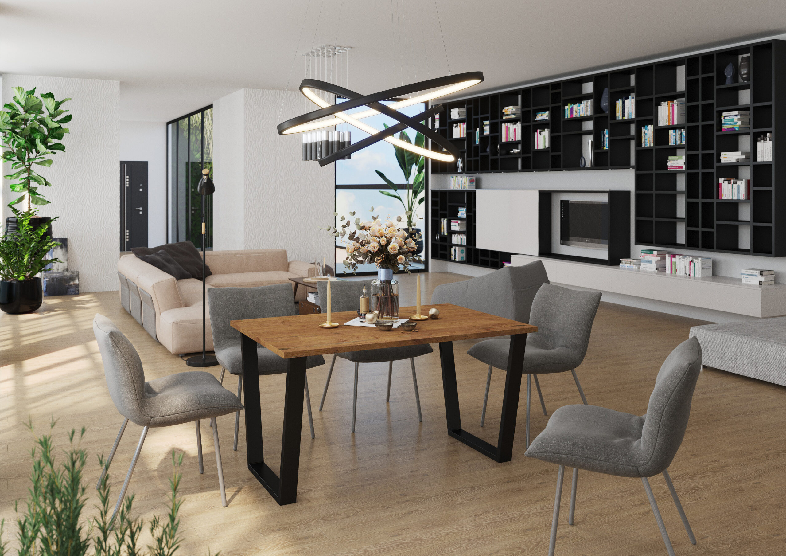 • jadalnie i aneksy w stylu loft, nowoczesnym i skandynawskim,