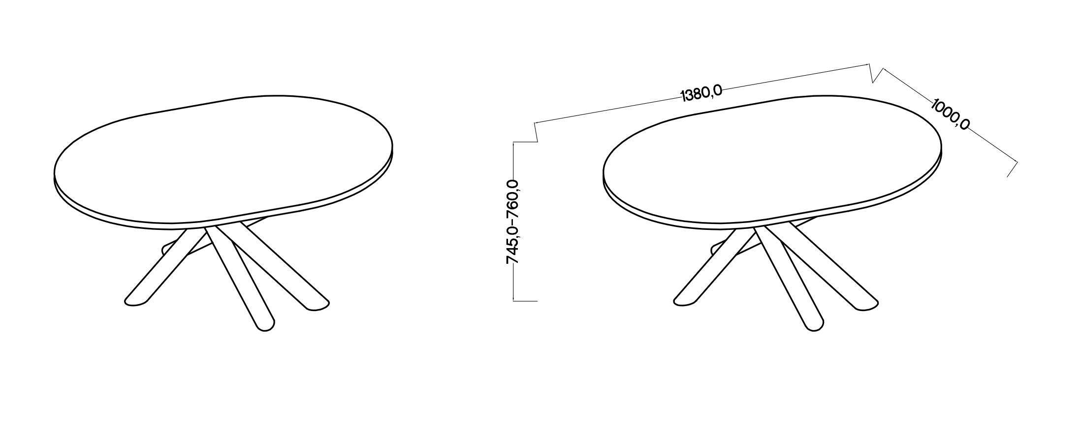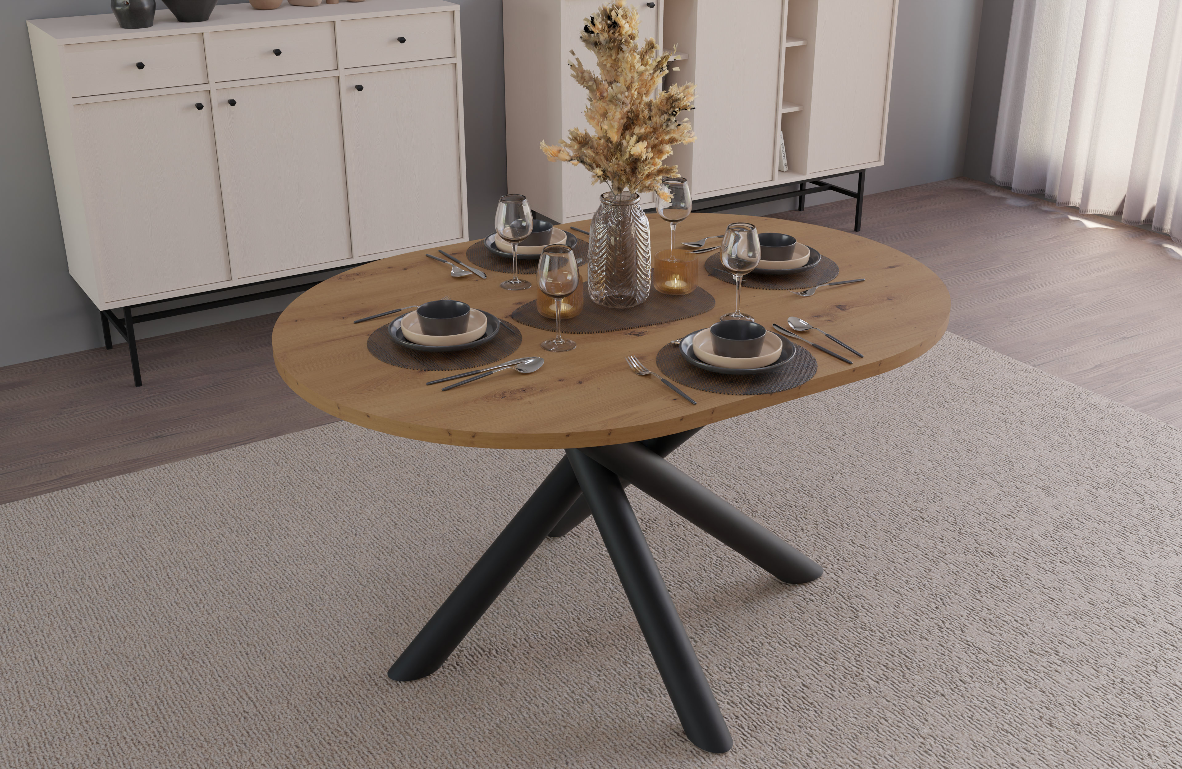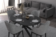 • Ponadczasowy wygląd – smukły, owalny blat + czarna, matowa podstawa tworzą lekki, nowoczesny zestaw.