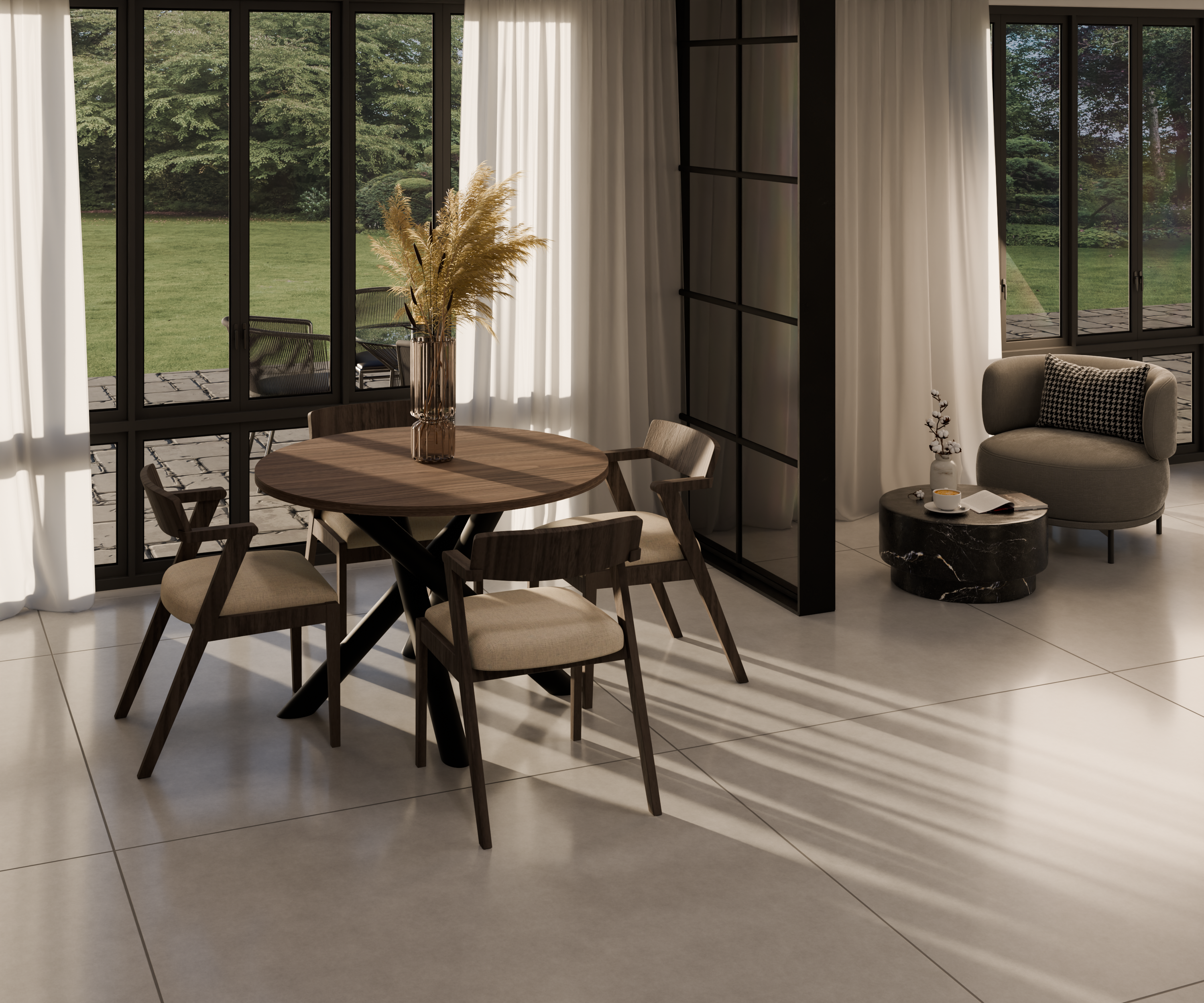 Wygoda w małych i średnich wnętrzach – okrągły kształt ułatwia ustawienie i rozmowę przy stole.