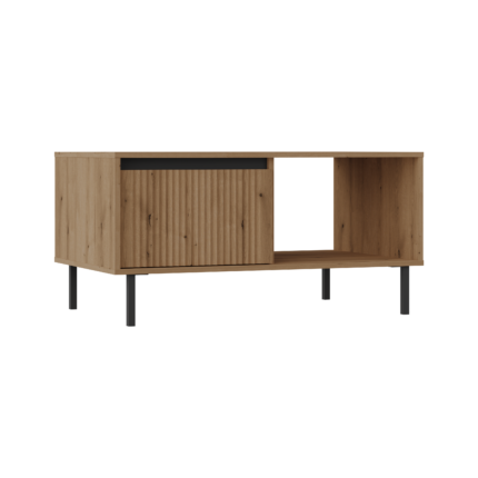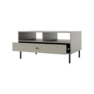 Harmony S1 to nowoczesny stolik kawowy, który łączy elegancję z funkcjonalnością. Jego prosta forma, minimalistyczne detale i wysokiej jakości materiały sprawiają, że jest idealnym wyborem zarówno do nowoczesnych, jak i klasycznych wnętrz. Dzięki praktycznemu układowi z otwartą wnęką i pojemną szufladą stolik pozwala na wygodne przechowywanie niezbędnych przedmiotów, takich jak piloty, książki czy dekoracje.