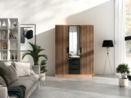 Korpus: dąb Wotan / front: lamela + czerń + lustro