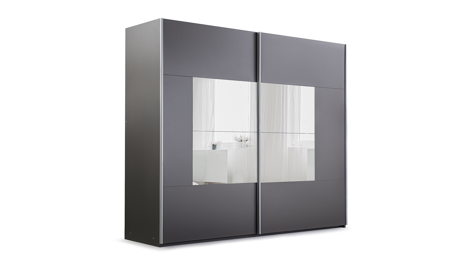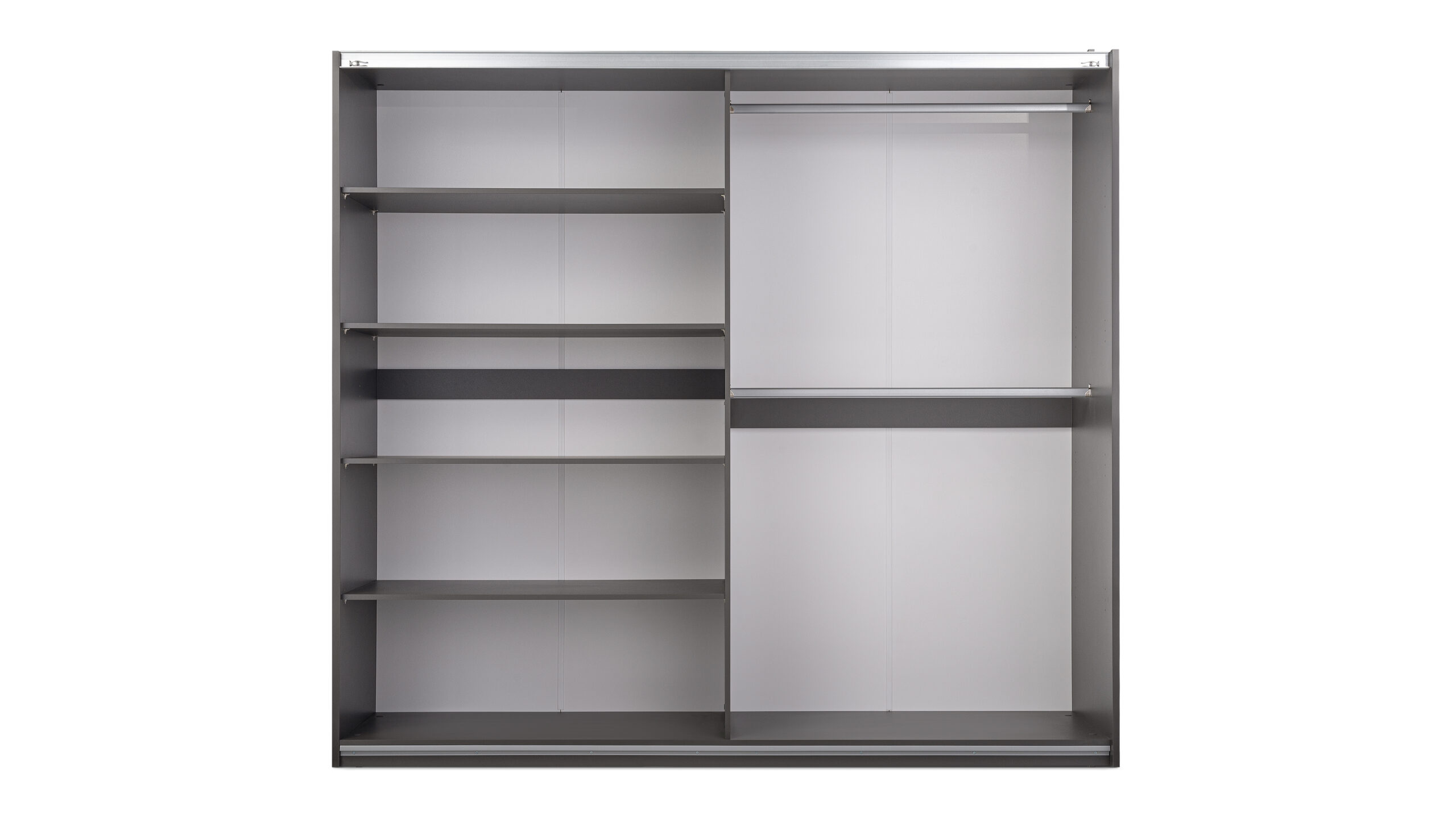 Szukasz dużej szafy, która „ogarnie” garderobę całej rodziny i jednocześnie doda wnętrzu klasy? BOSTON 250 to szeroka (250 cm) szafa przesuwna z dekoracyjnym, poziomym pasem luster na frontach. Minimalistyczne bryły w modnych kolorach (grafit lub kaszmir) świetnie odnajdą się w sypialni, garderobie i nowoczesnym przedpokoju.