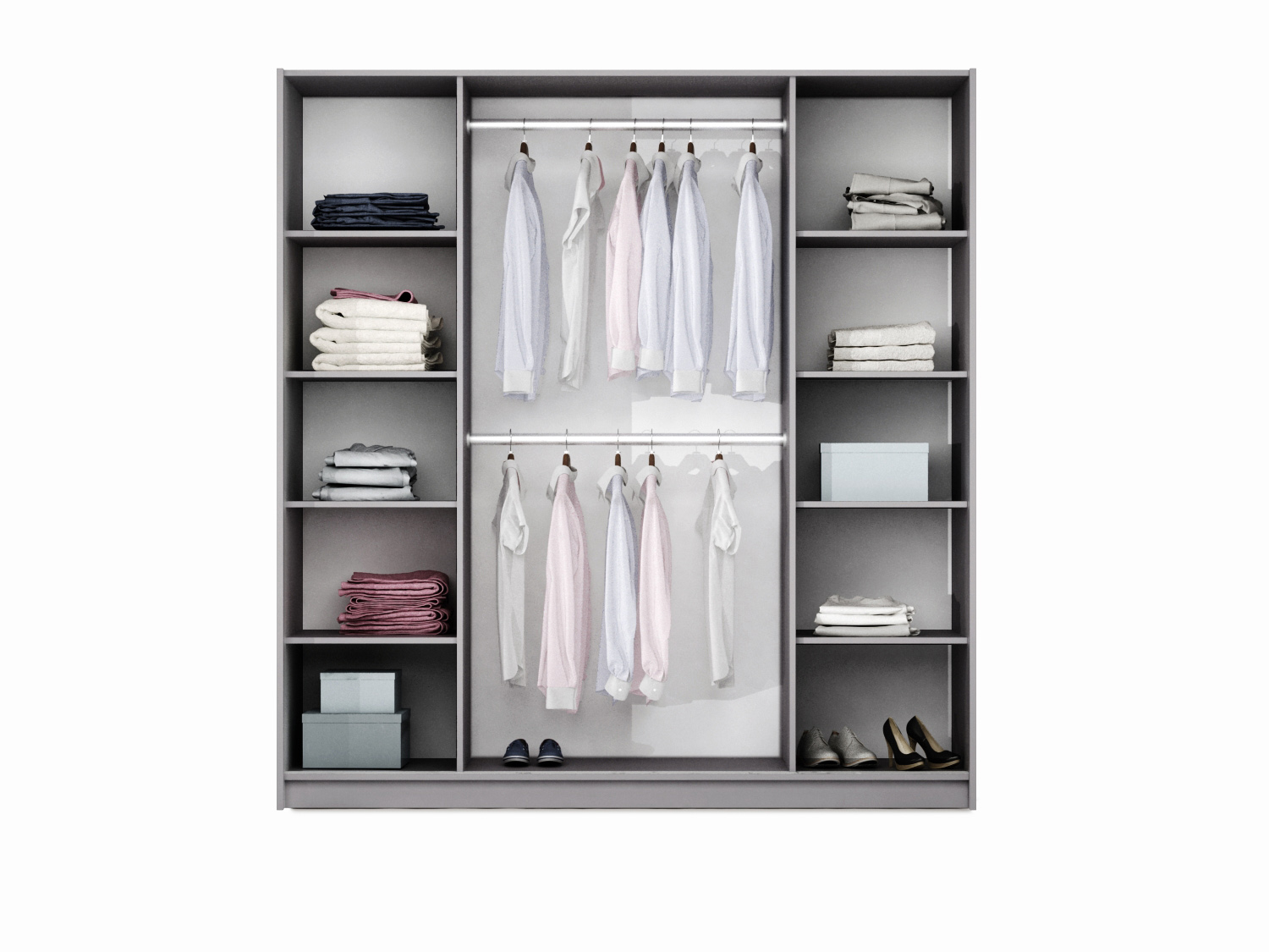 • liczne półki na swetry, jeansy, pudełka i dodatki,