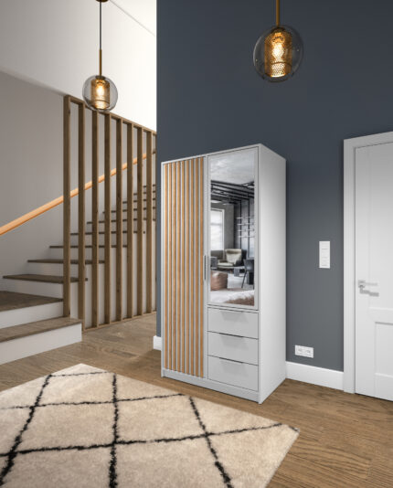 Solidne zawiasy, wygodne uchwyty, dbałość o detale – szafa zaprojektowana do codziennego, intensywnego użytkowania.