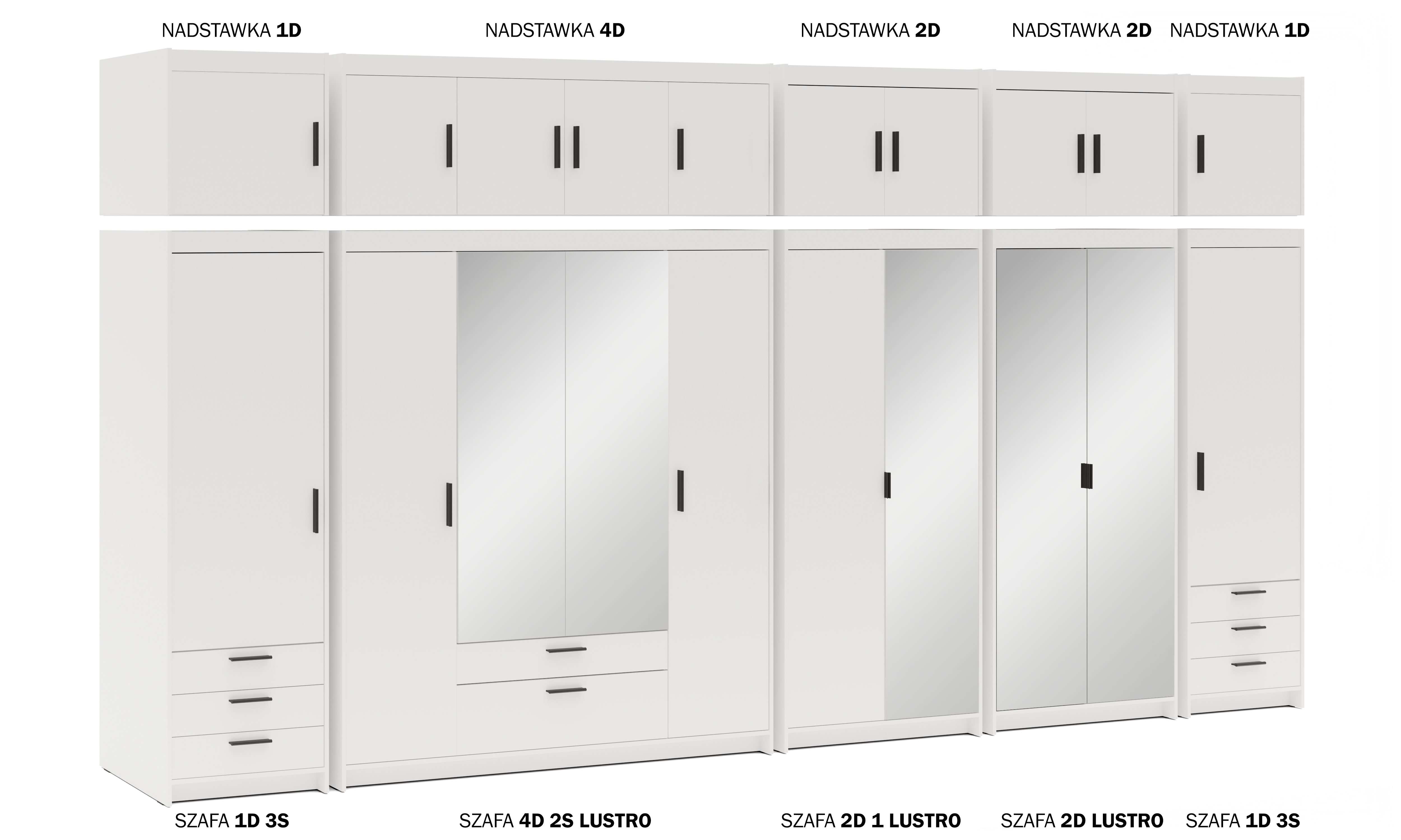 ELENA 4D 6S – LUSTRO to szafa, która „ogarnię” Twoją garderobę od A do Z. Wybierz kolor, zamów i ciesz się porządkiem każdego dnia.