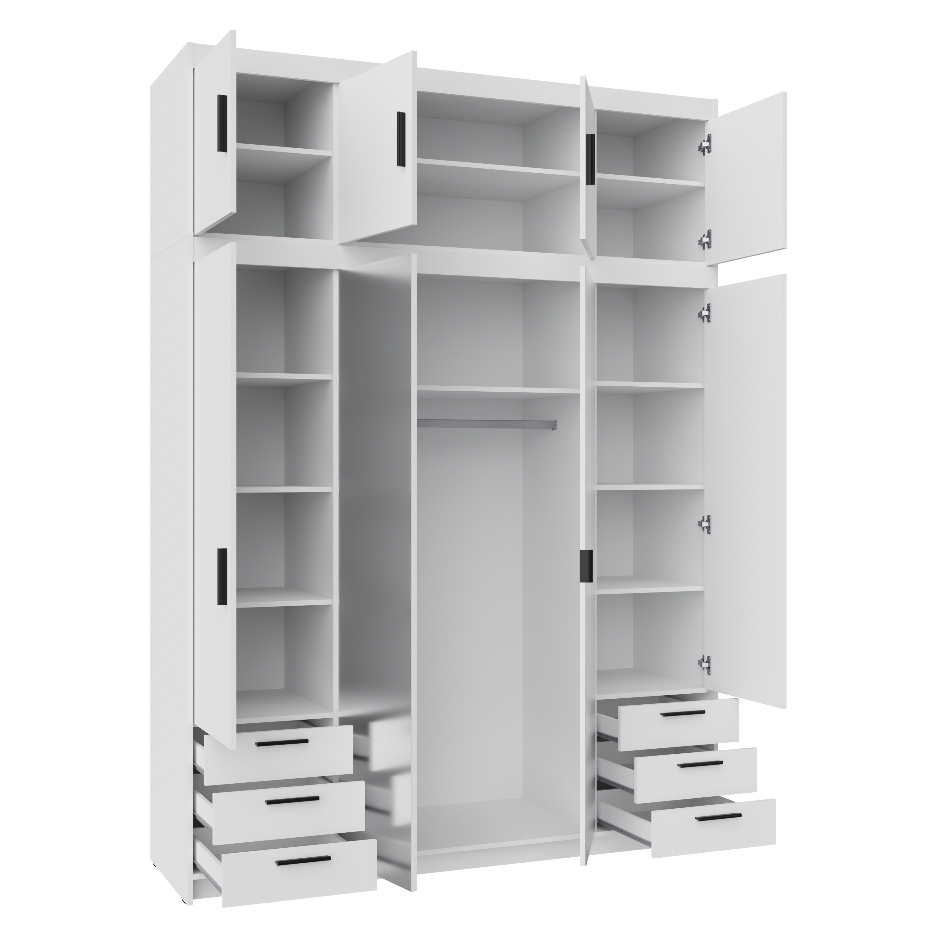 ELENA 4D 6S świetnie komponuje się z innymi bryłami systemu ELENA (szafy 2D/3D/4D, narożna, komody). Dzięki temu zbudujesz spójną zabudowę garderobianą pod swój pokój.