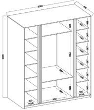 Układ frontów: 2 lustra + lamele + 3 szuflady (2L3S)