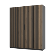 • Front 4LAM – cztery dekoracyjne pasy lameli na froncie podkreślają rytm i smukłość szafy.