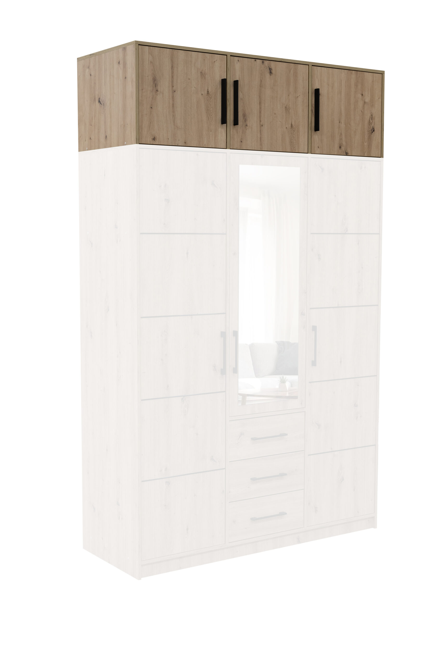 Szafa KOS D3 z lustrem – Dąb Artisan + nadstawka