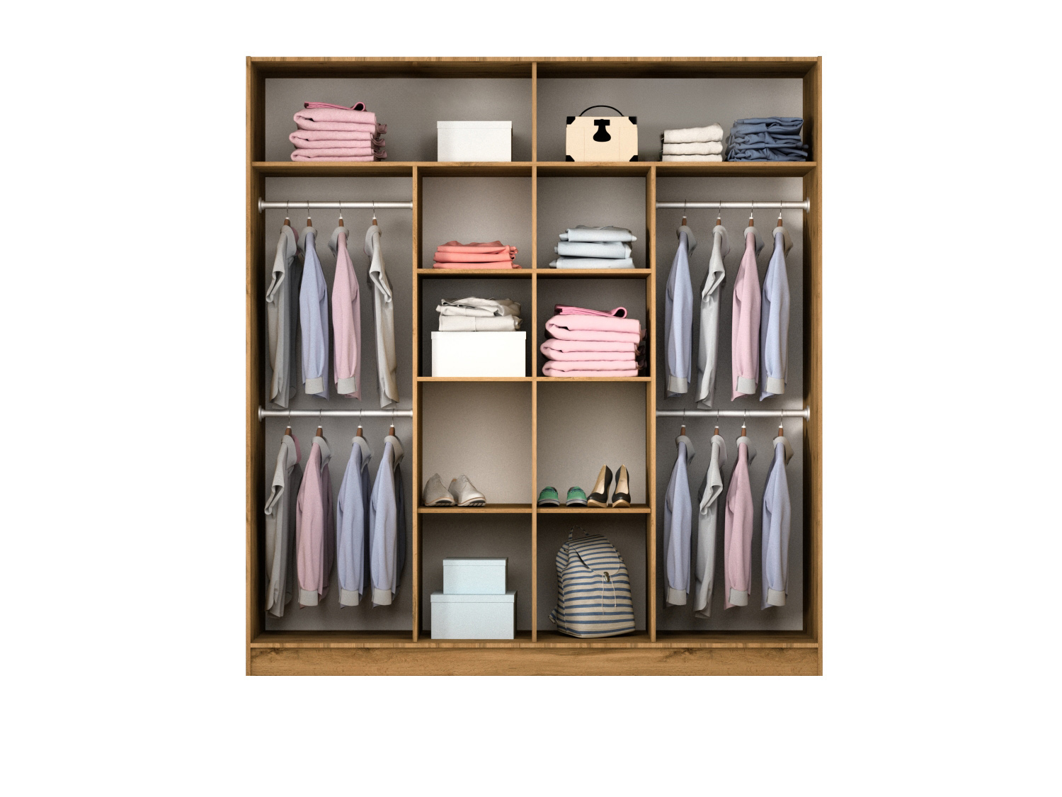 Wnętrze szafy PRAGA 200 zostało zaprojektowane z myślą o wygodnym przechowywaniu: