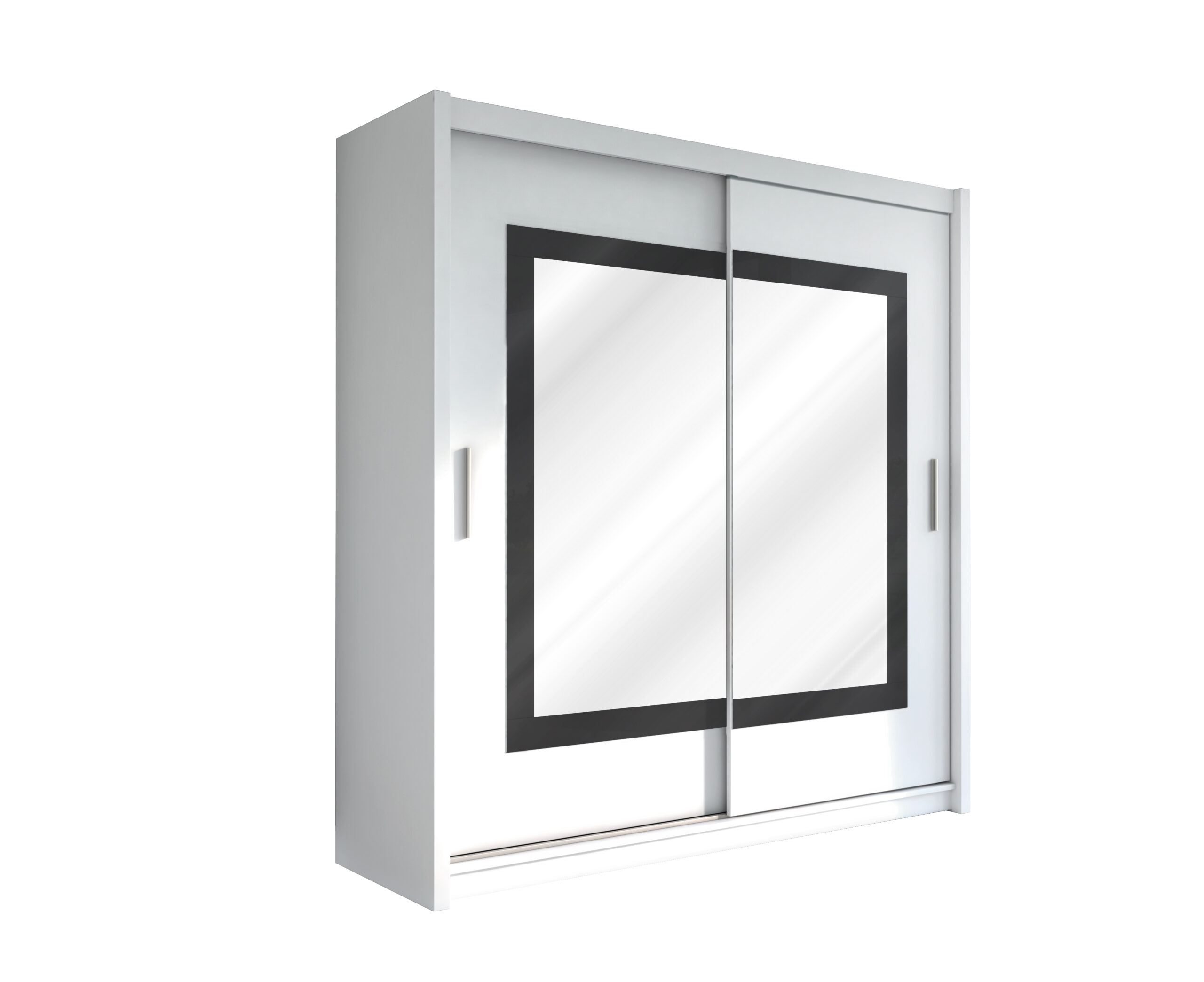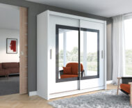 Szafa PRESTON 203 – nowoczesna szafa przesuwna z lustrem i szkłem | 203 cm | Biała
