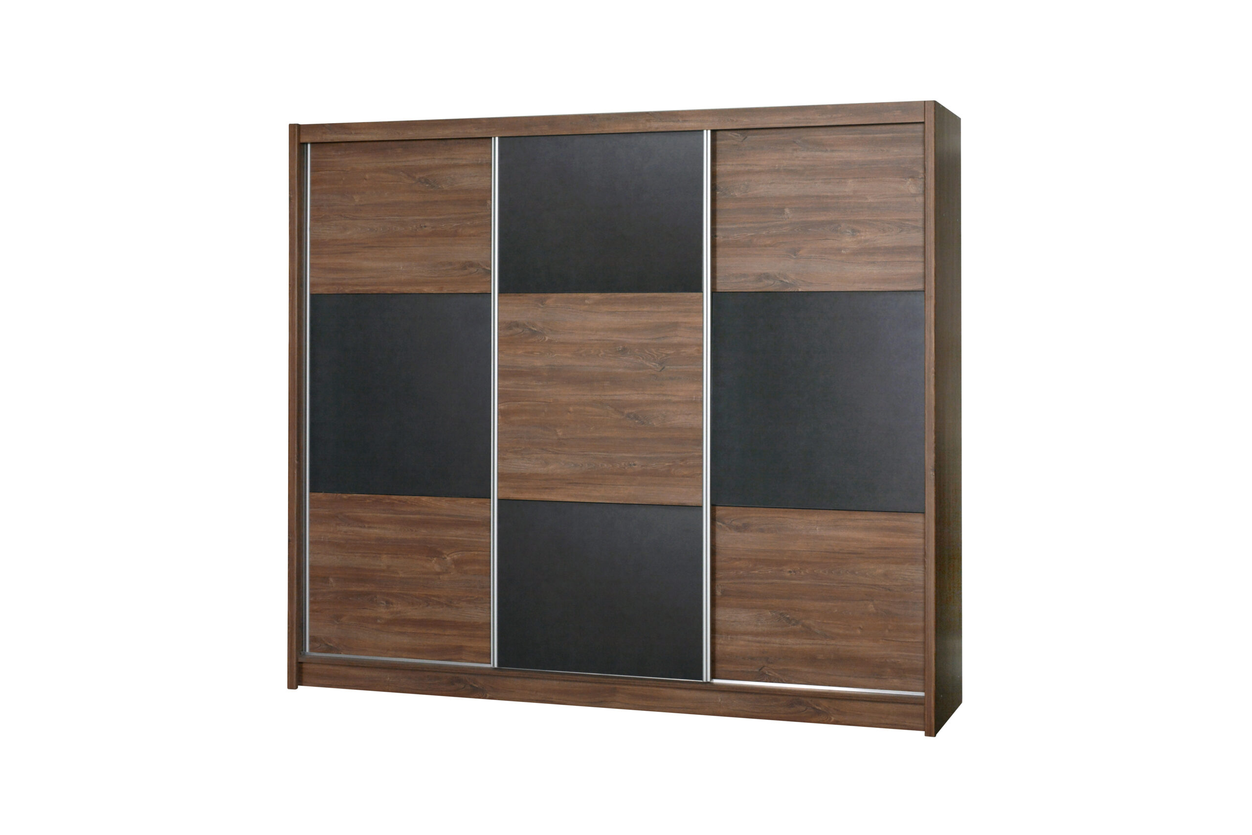 Elegancka i wyrazista szafa CORDOBA to nowoczesny akcent do sypialni i garderoby. Fronty bez uchwytów tworzą efekt „szachownicy” z naprzemiennych pól dębu Sterling i betonu w ciepłym, brązowym odcieniu – dzięki temu mebel wygląda masywnie i bardzo stylowo, a jednocześnie nic nie zaburza rytmu gładkich powierzchni.