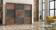 Szafa przesuwna CORDOBA – 250×61×215 cm, dąb Sterling / beton brązowy