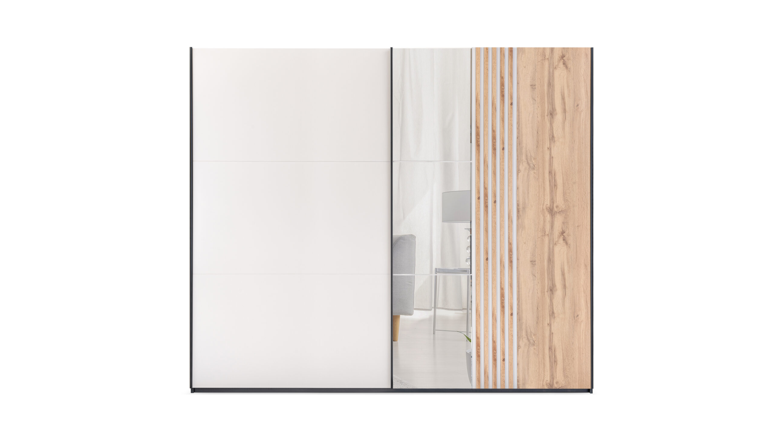 Szafa przesuwna EVORA 250 cm z lustrem i lamelami – nowoczesny styl i wyjątkowa pojemność