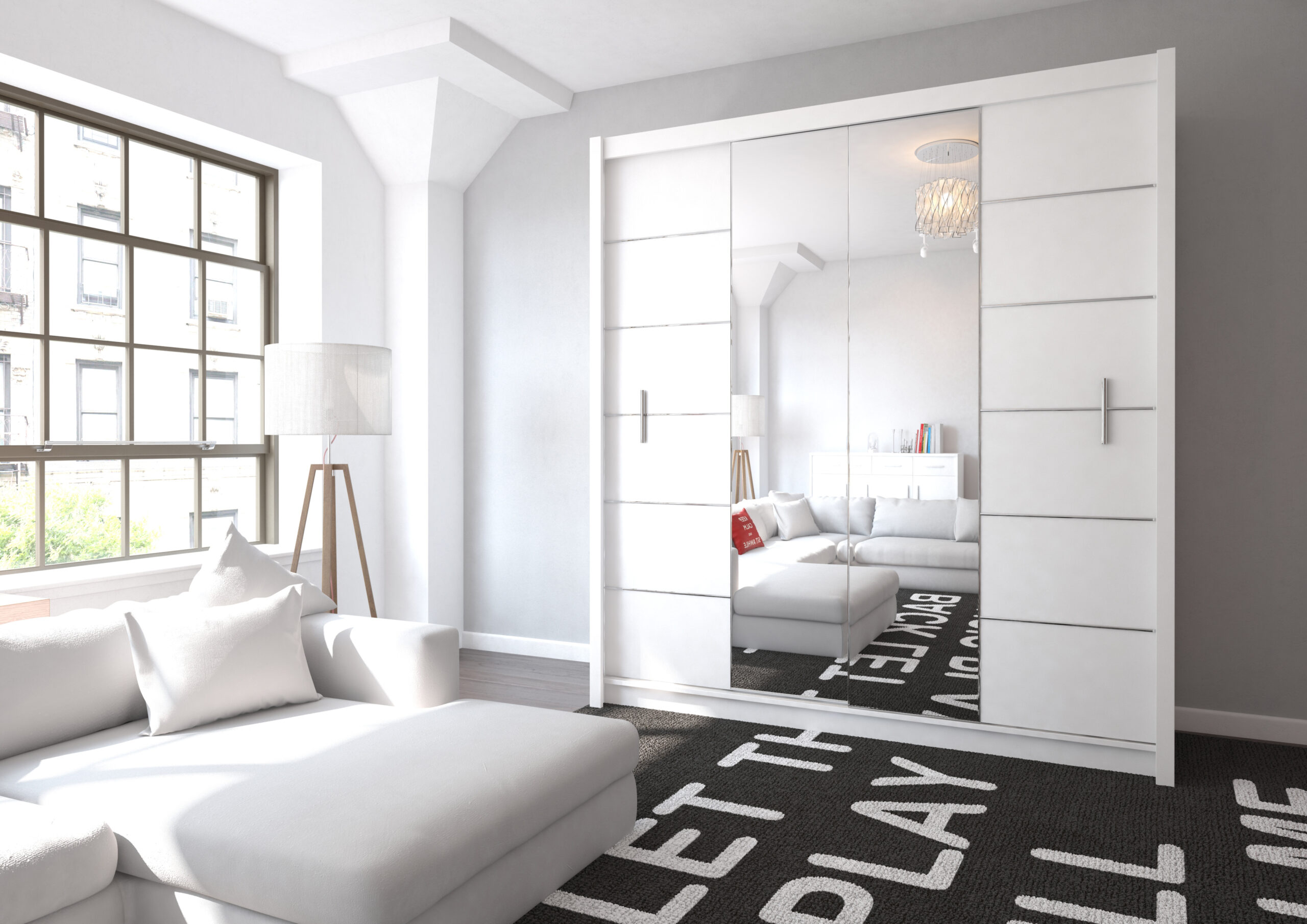 nowoczesna szafa przesuwna z dużym lustrem,